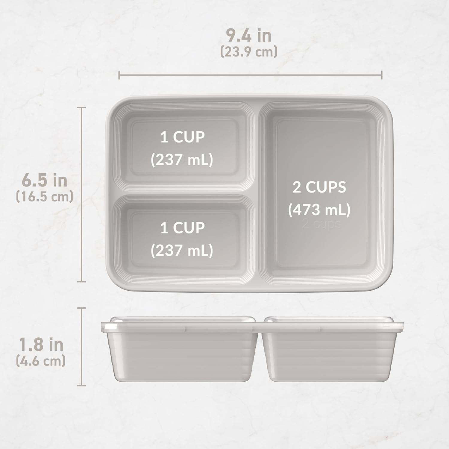 - Portion-Controlled Design: No need to measure your portions—volume is already embossed on the tray to help you with your healthy eating goals, diet, or weight loss plans. The custom-fit lids keep food fresh all day long and stack together neatly to save you space in your pantry. Plus, all the lids are clear, so you can easily identify what food is inside at a glance.