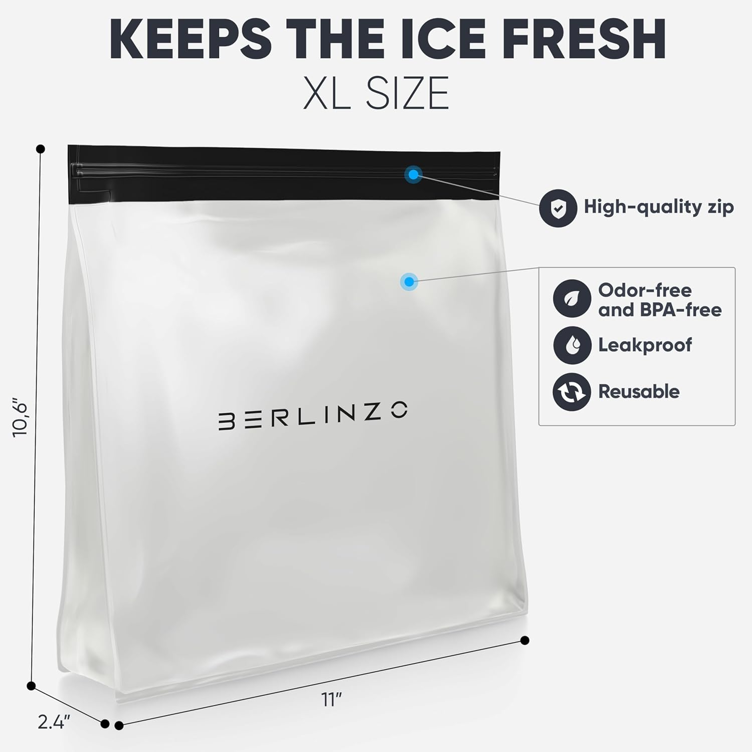- BERLINZO LEAKPROOF ICE STORAGE BAG: Our Berlinzo ice storage bags provide a secure and mess-free storage solution for your ice cubes or balls. Say goodbye to water leakage and enjoy a clean and organized freezer with our freezer-safe, reusable ice storage bags.