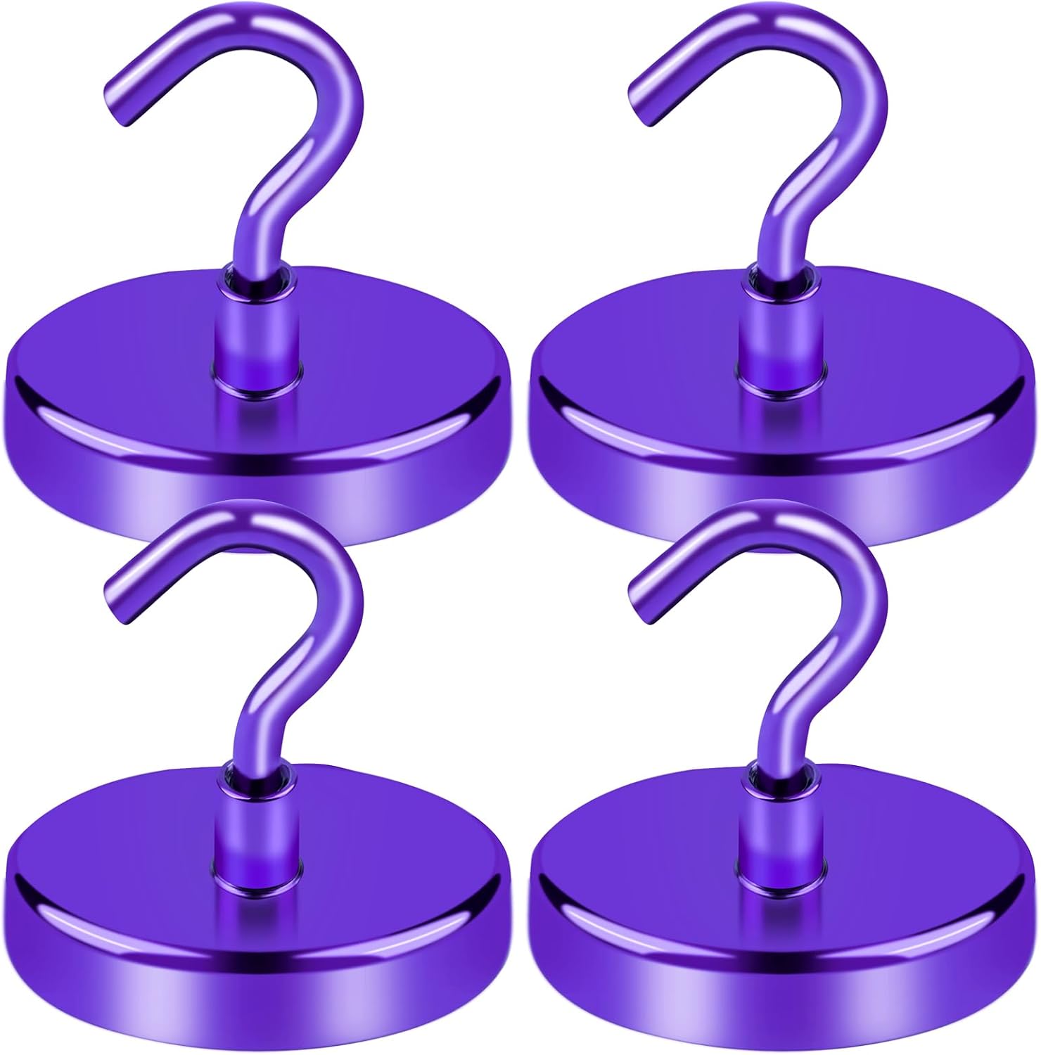 LOVIMAG Strong Magnet Hooks, 150Lbs Metal Heavy Duty, Purple with Hooks for Hanging, Cruise Cabins, Refrigerator - 4 Pack
