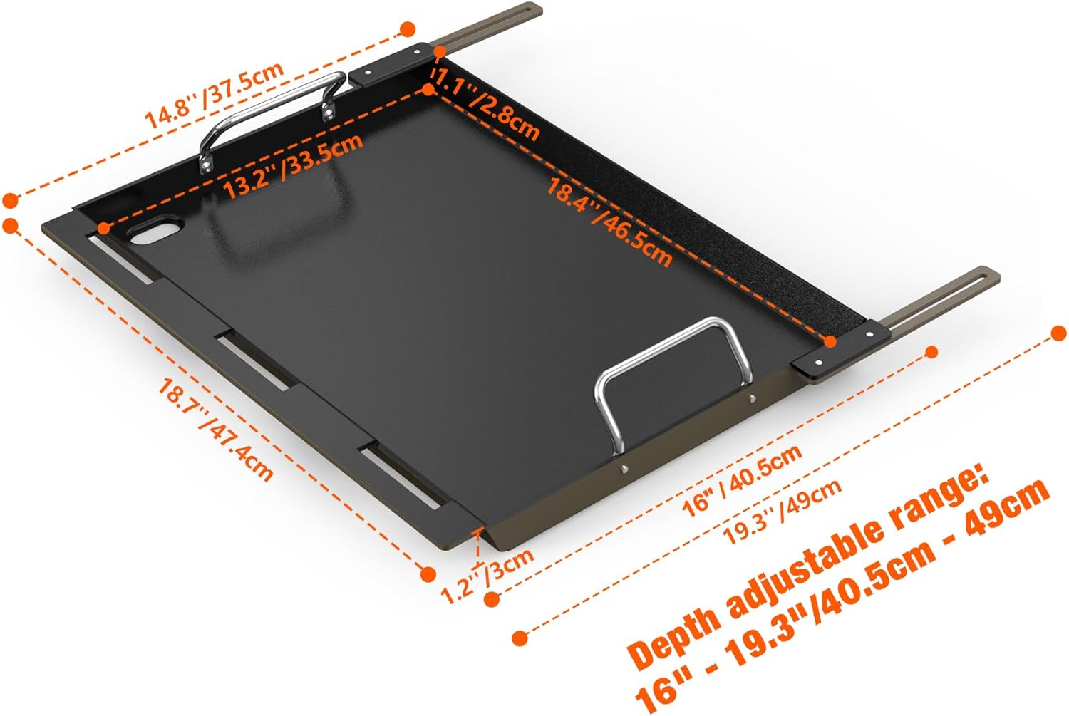 - Retractable Stands: Equipped with two retractable stands to fit 3-burner gas grills with different depths. Griddle depth adjustable from 16" - 19.2". Please measure the depth of your grill's cooking area before purchasing.