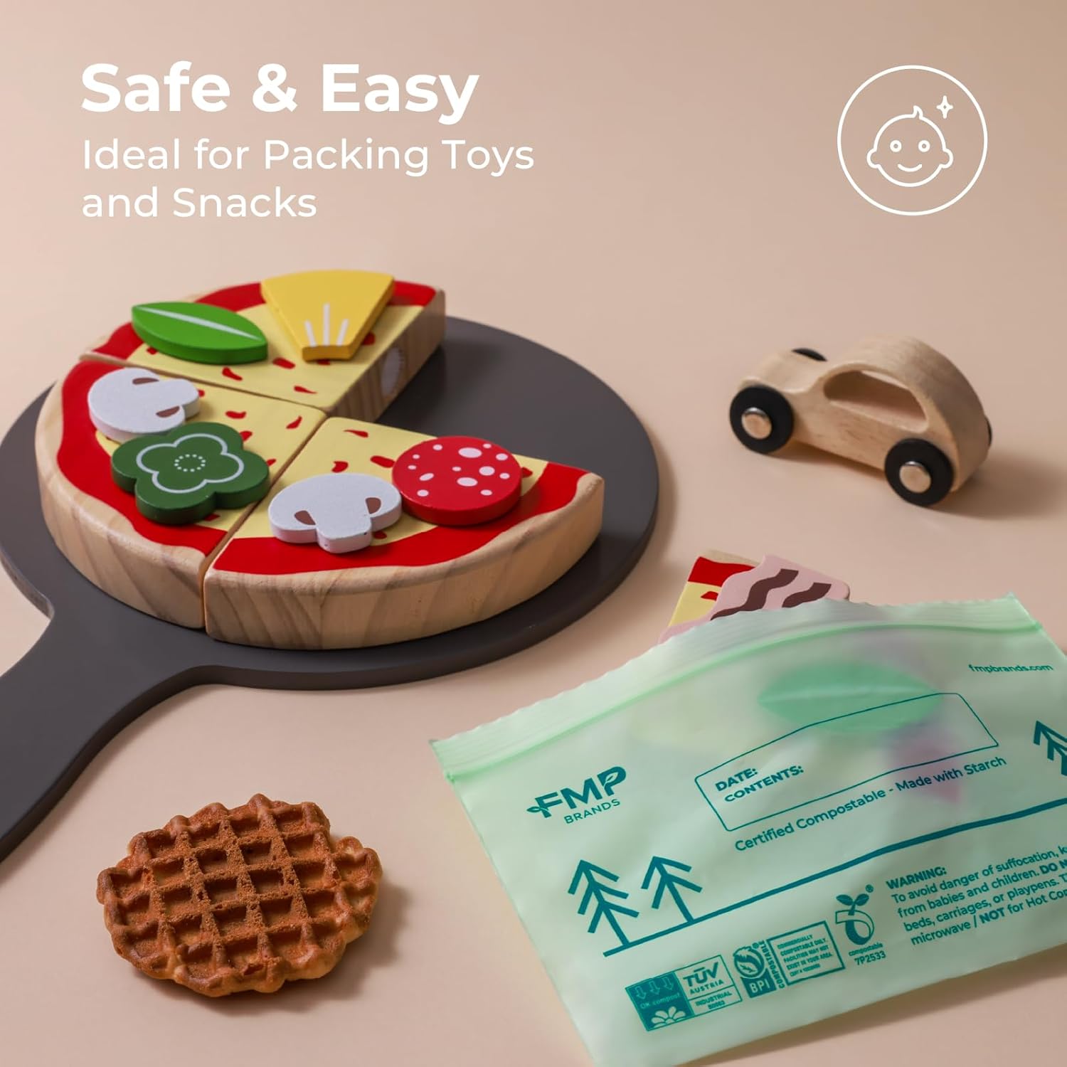 Fit Meal Prep 50 Pack 100% Compostable Snack Bags, 6.5 x 4.1" Resealable Food Storage Bags Snack Size, Plant-Based Freezer Bags for Food, ASTM D6400, US BPI & EU OK Compost Certified