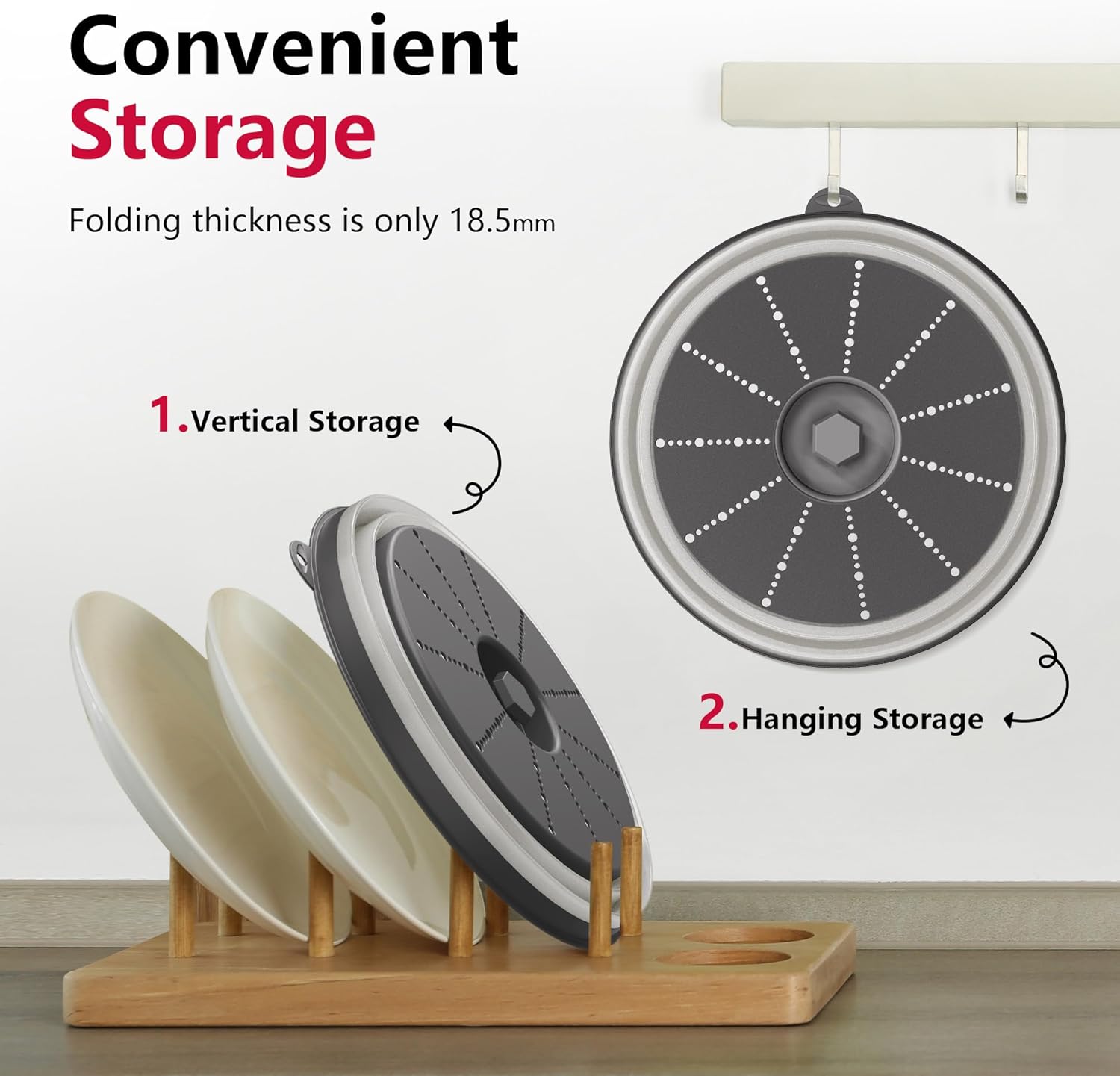 - Easy to Store: The foldable microwave splatter cover pops up to 3.2 inches to cover tall plates, food stacks, and shallow bowls. It also folds down to 0.72 inches when not in use. And features a hook hole for easy storage, saving you more space.