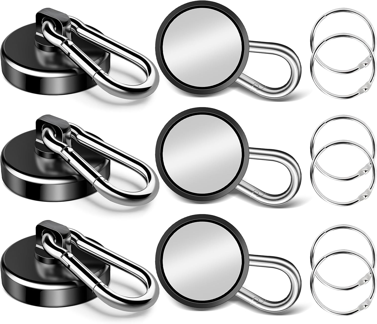 Magnetic Hooks, 70Lbs Heavy Duty Magnetic Hooks with Swivel Carabiner for Cruise Cabins, 6 Pack Extral Strong Neodymium Magnet Hooks for Hanging, Metal Magnetic Hanger for Toolbox, Grill, Fridge