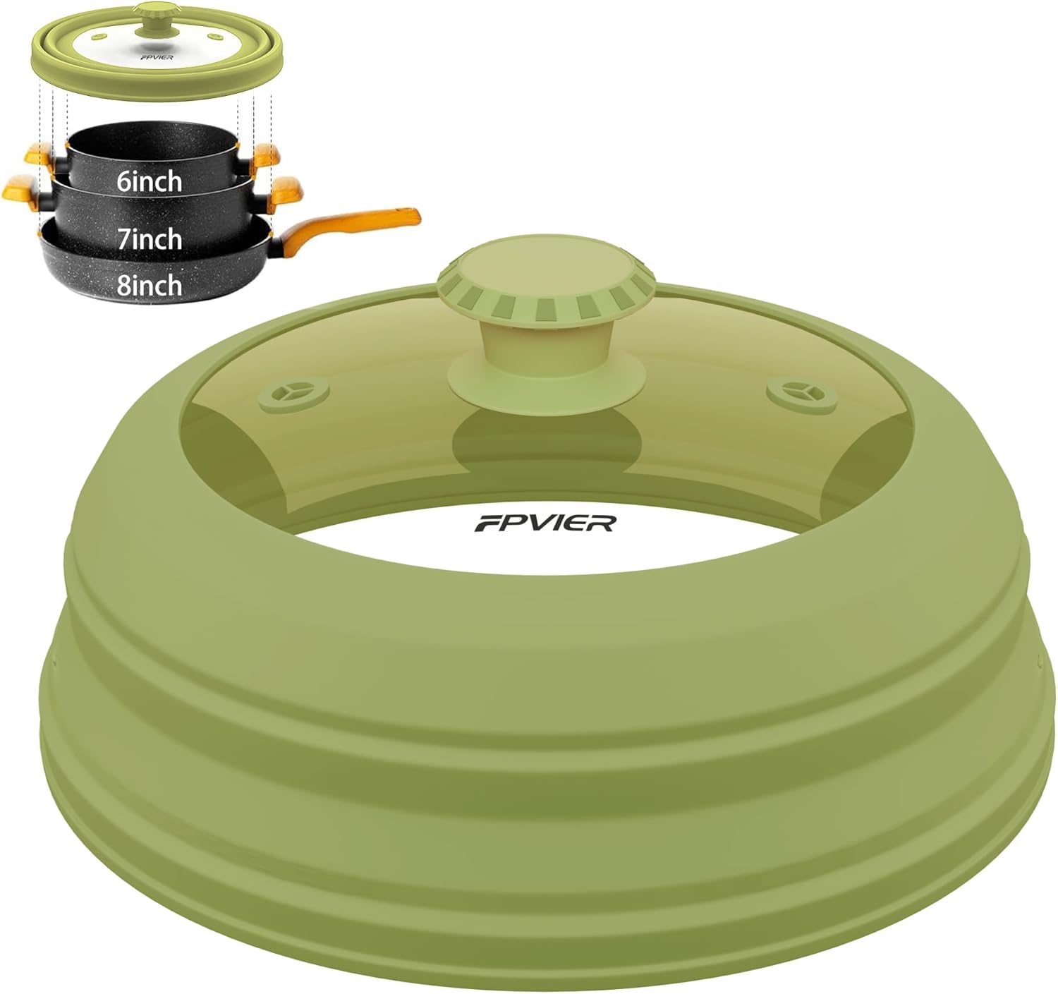 - 【Patent Collapsible Design】Experience the excellence with FPVIER's Patent Collapsible Silicone Dome, the diameter is 9 inch (22.86 cm), uniquely crafted to cover plates & bowls from 6"-8" with ease, providing a big surprise in the compact storage form.