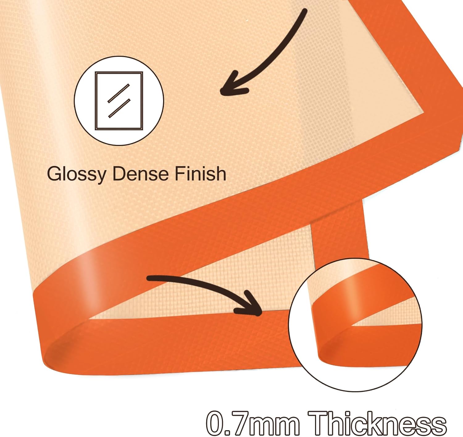 - [ NONSTICK SURFACE ] There is no need to grease the silicone baking sheet when using it, and even the dough is less likely to stick to the silicone baking sheets for oven. Each baking mat is 0.03 inches thick, double thickness for durability.