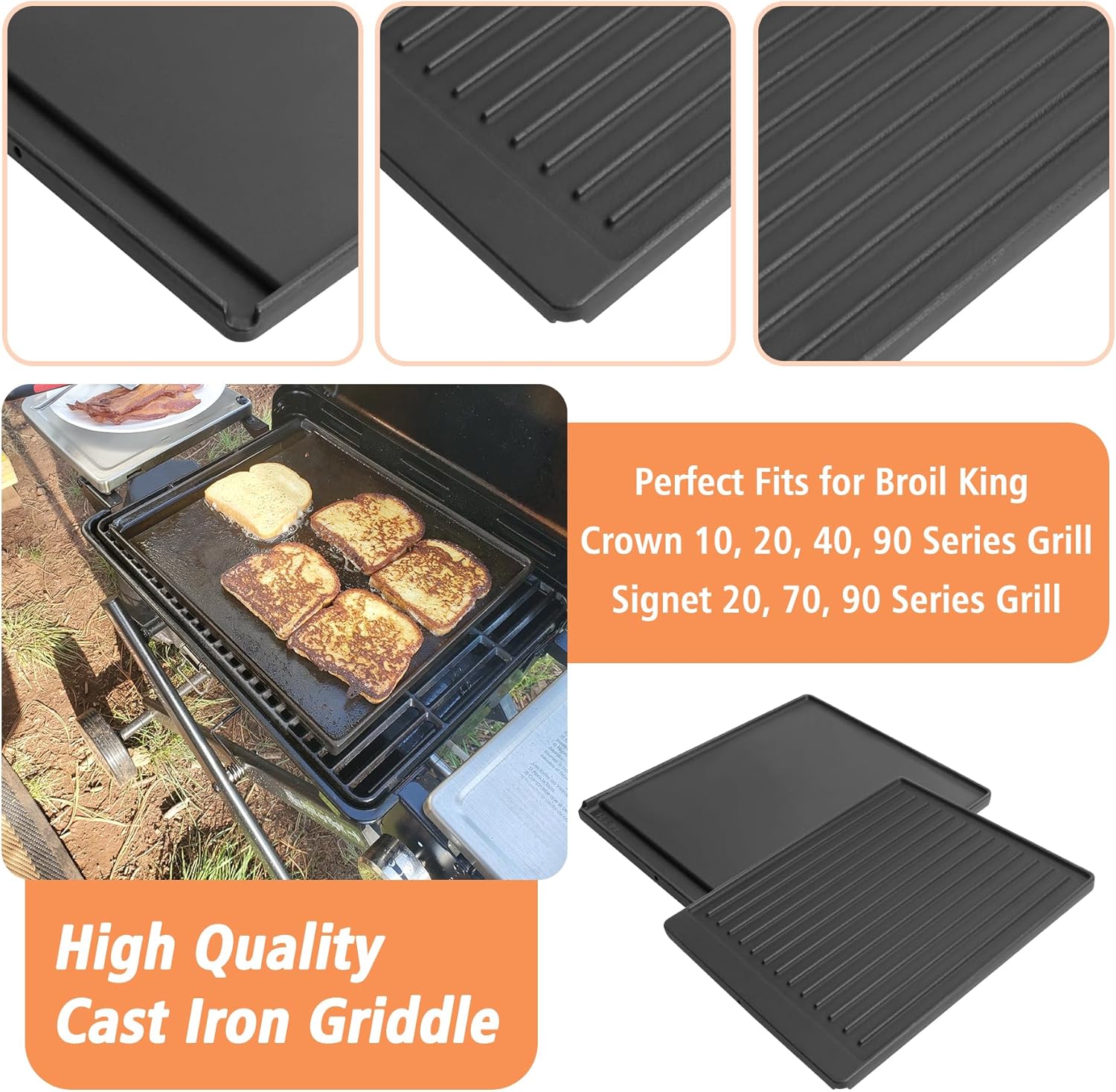 - Compatible with Broil King Grill: 15" x 12.8" cooking area. Perfect fits Broil King Crown 10, 20, 40, 90 series grill, Broil King Signet 20, 70, 90 series grill. It is large enough to sear several steaks at a time, or make multiple pancakes at once in the morning to space and time save