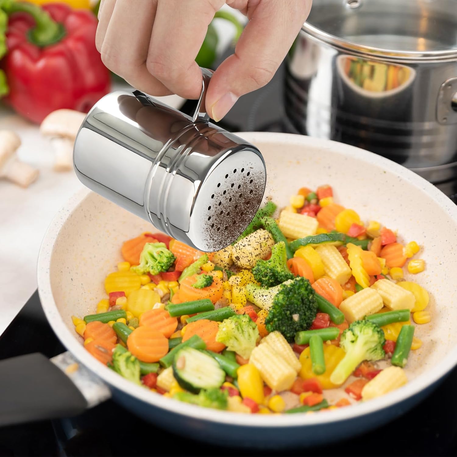 - Twist-off tops, convenient to add powder or other spices. This cooking dredges perfect for used as shaker for salt, pepper, cinnamon, powdered sugar, flour or any other spices, seasonings.