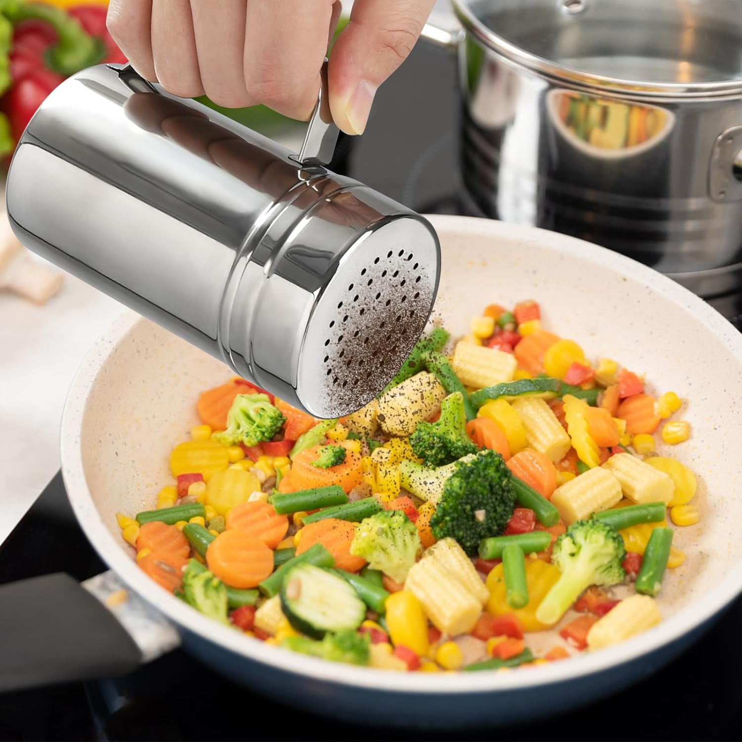 - Twist-off tops, convenient to add powder or other spices. This cooking dredges perfect for used as shaker for salt, pepper, cinnamon, powdered sugar, flour or any other spices, seasonings.