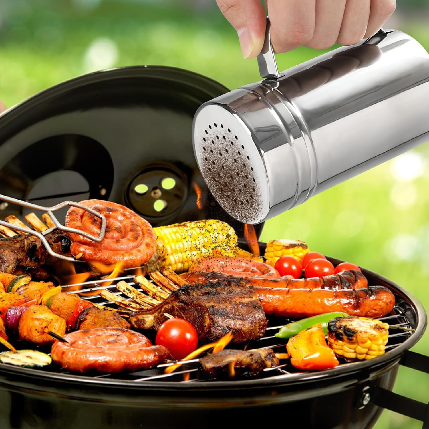 Accmor 2pcs Stainless Steel Dredge, Salt Pepper Dredge Shakers with Handle, Seasonings Spice Shakers with Lid, 14 Ounce