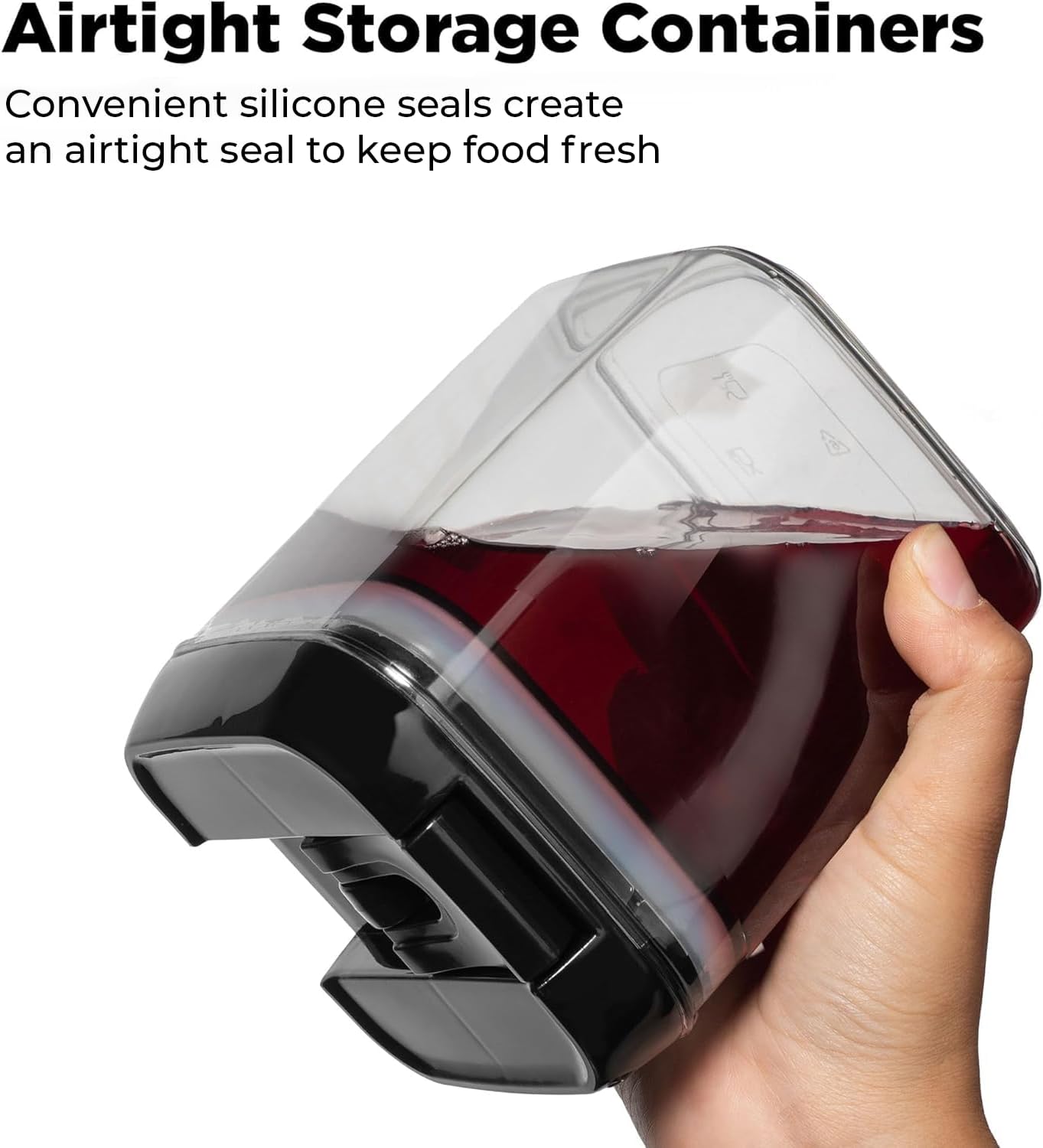 - 【 ULTIMATE FRESHNESS WITH AIRTIGHT LIDS 】 The easy-pour corners, leak-proof and airtight silicone seal ensure freshness of your food, prevent spills, making them perfect for storing everything from spices and herbs to snacks and liquids, these air tight pantry storage containers provide a versatile storage solution for both dry and liquid food.