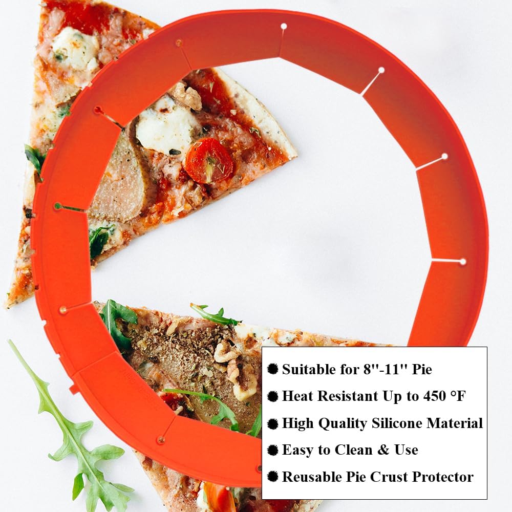 - Heat Resistant Pie Rings for Crust Adjustable: The silicone pie protector can resist heat up to 450 °F which can be perfectly used at extremely high cooking temperatures. The kitchen silicone protector can be adjusted in size to fit 8 inches to 11.4 inches pie or pizza