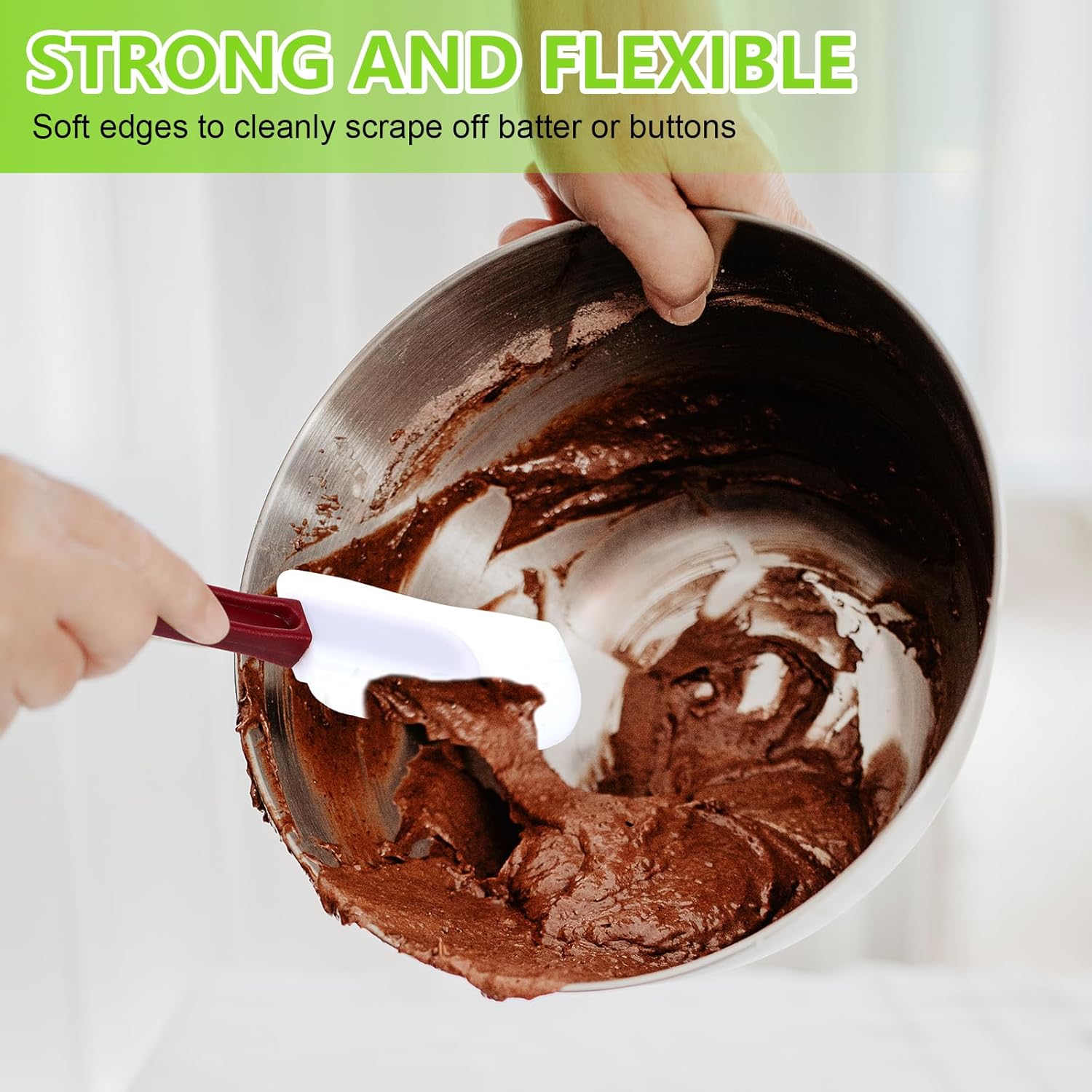 - Safe Material: our spatulas are made of food grade silicone (the head part) and nylon (handle), you will feel safe when using them, meanwhile the rubber spatulas are durable and resistant to 500 degrees Fahrenheit, so they will not melt or emit odor during use and not easy broken