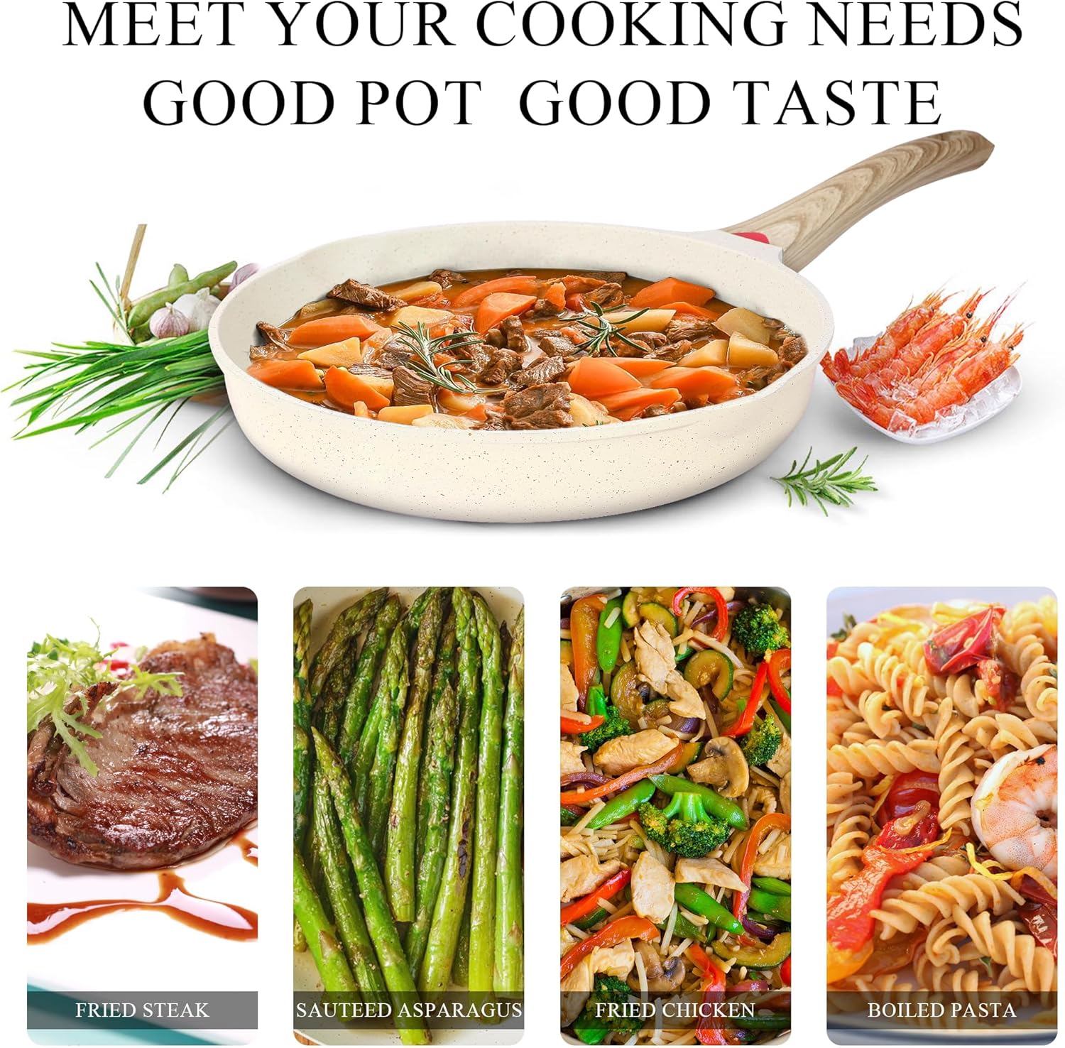 Vinchef Nonstick Frying Pan Anti Scratch,12.5 Inch Skillet Cast Aluminum Cookware, Induction Compatible White