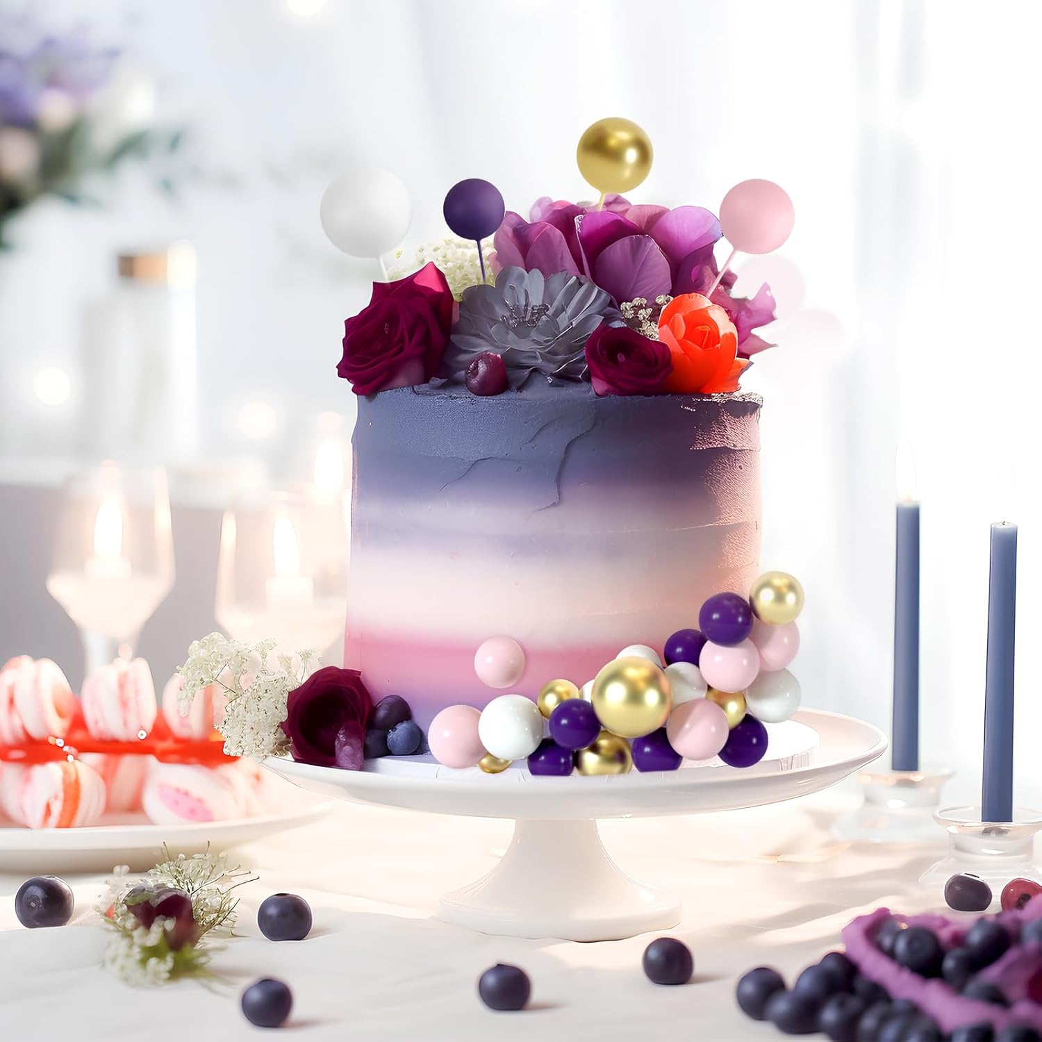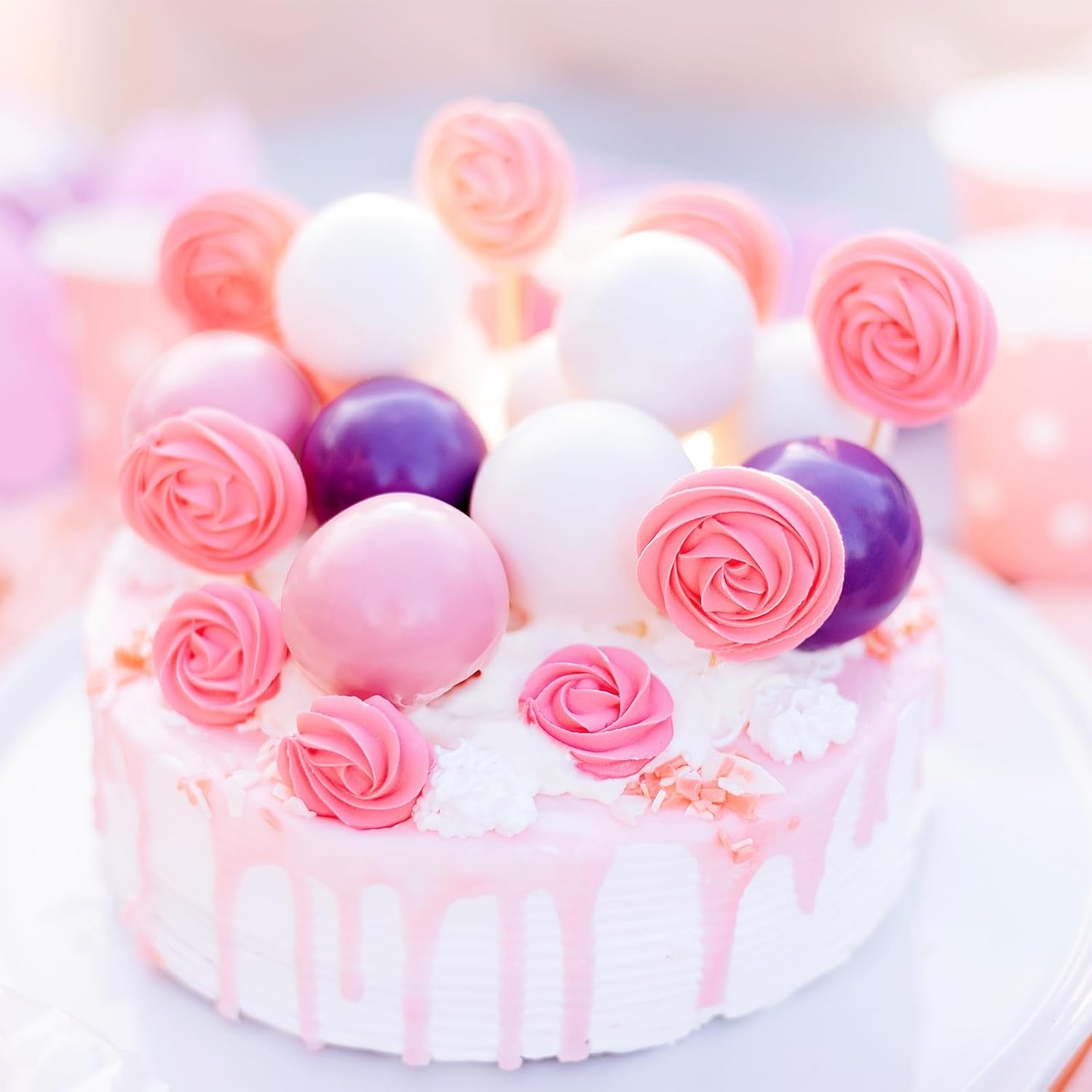 - Package Includes: You will get 48 pcs cake balls decorations in 4 colors and 10 butterflies cake decoration, including pink purple white and gold. 12 pieces of each color. The quantity of each sizes and colors included in each set are as shown in the picture