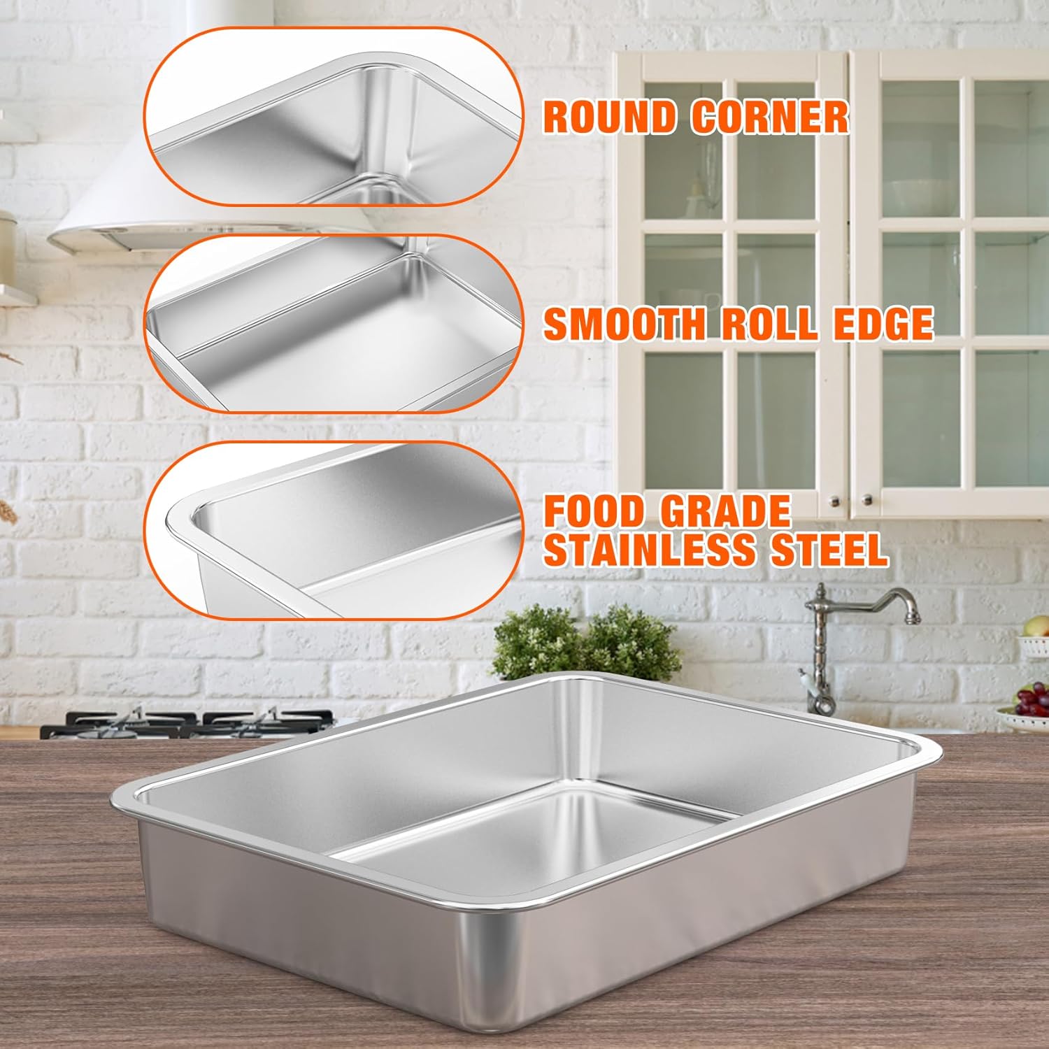 - 【Food-Grade Safety】- Made of high-quality food-grade stainless steel, this baking pan ensures no harmful chemicals are released at high temperatures, safeguarding your health. It's also lightweight for effortless handling.