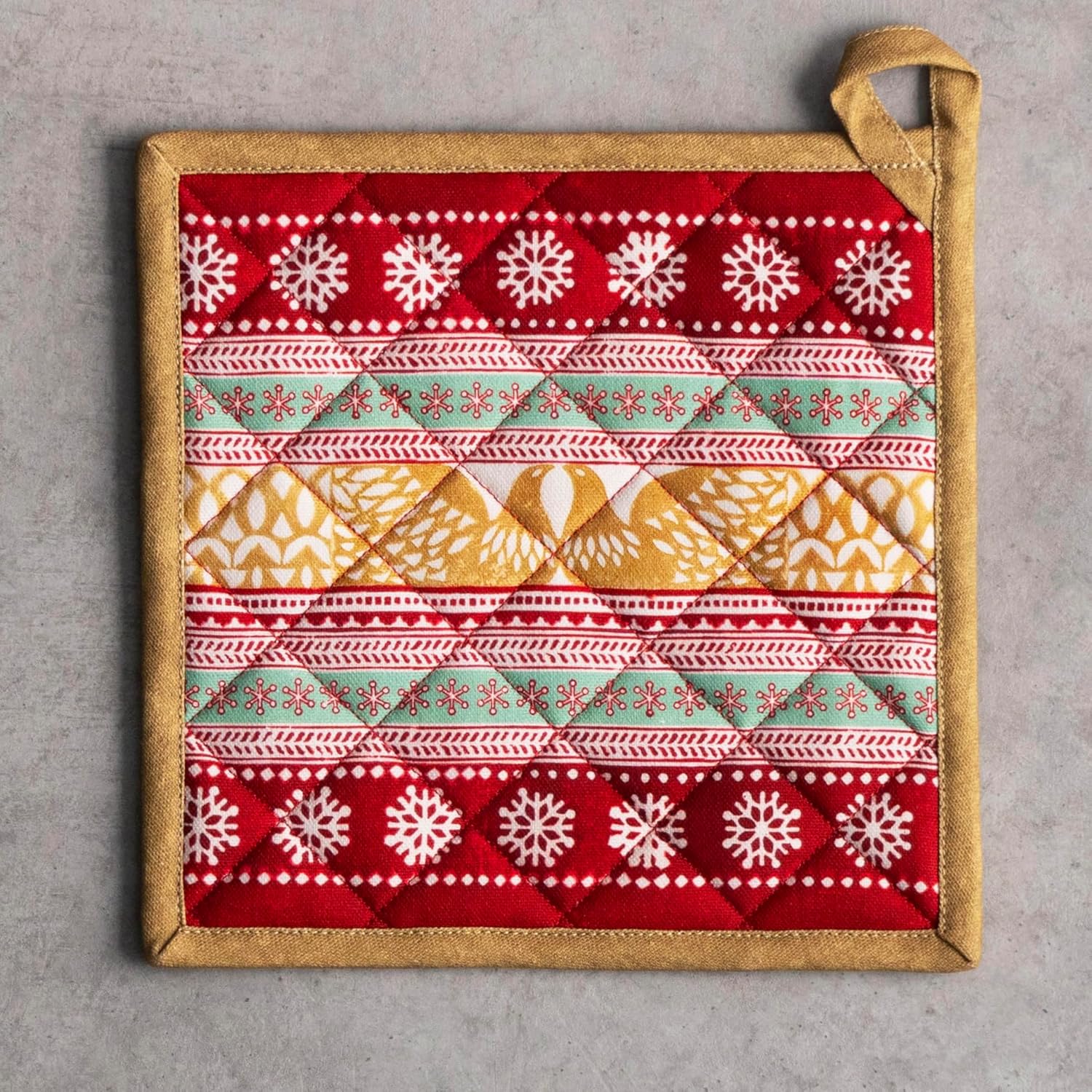 - Package includes: Set includes 1 oven mitt (7.5 x 13") and 1 pot holder (8 x 8"), perfect for baking, roasting, and cooking. Made from 100% cotton for reliable protection. Our products are Designed in Europe and Made in India