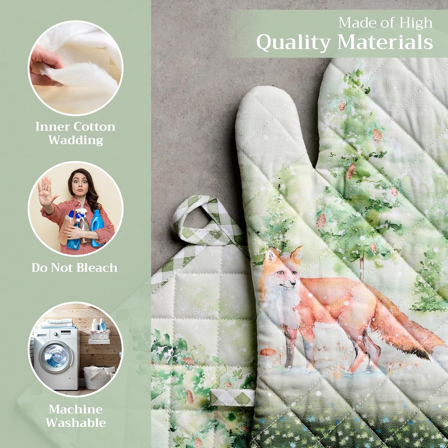 - Artistic style: Add charm to your kitchen with our oven mitt pot holder set featuring watercolor designs inspired by traditional European motifs. Stylish and functional kitchen accessories for every home cook or gift occasion.