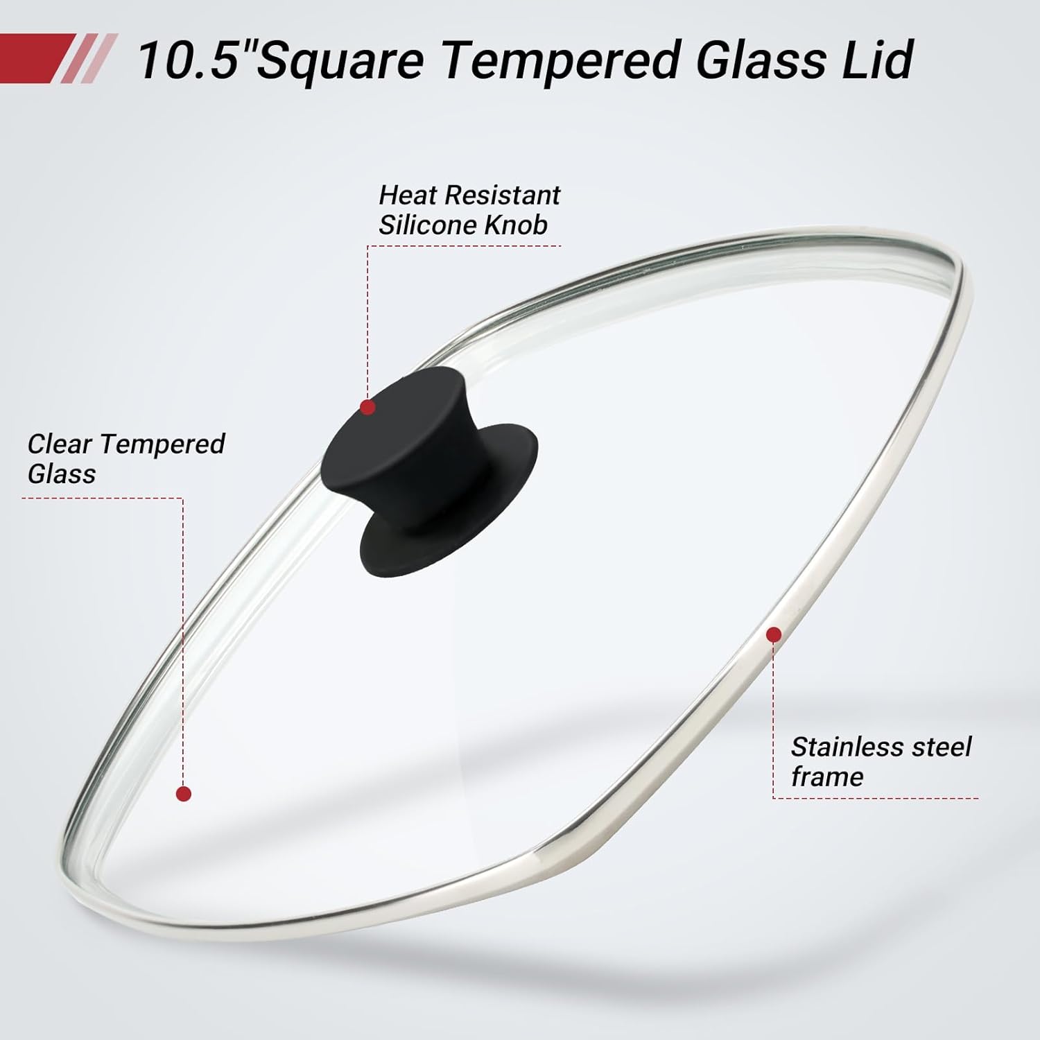 10.5 Inch Cast Iron Square Grill Pan with Tempered Glass Lid, Heavy Steak & Bacon Pans for Stove Tops