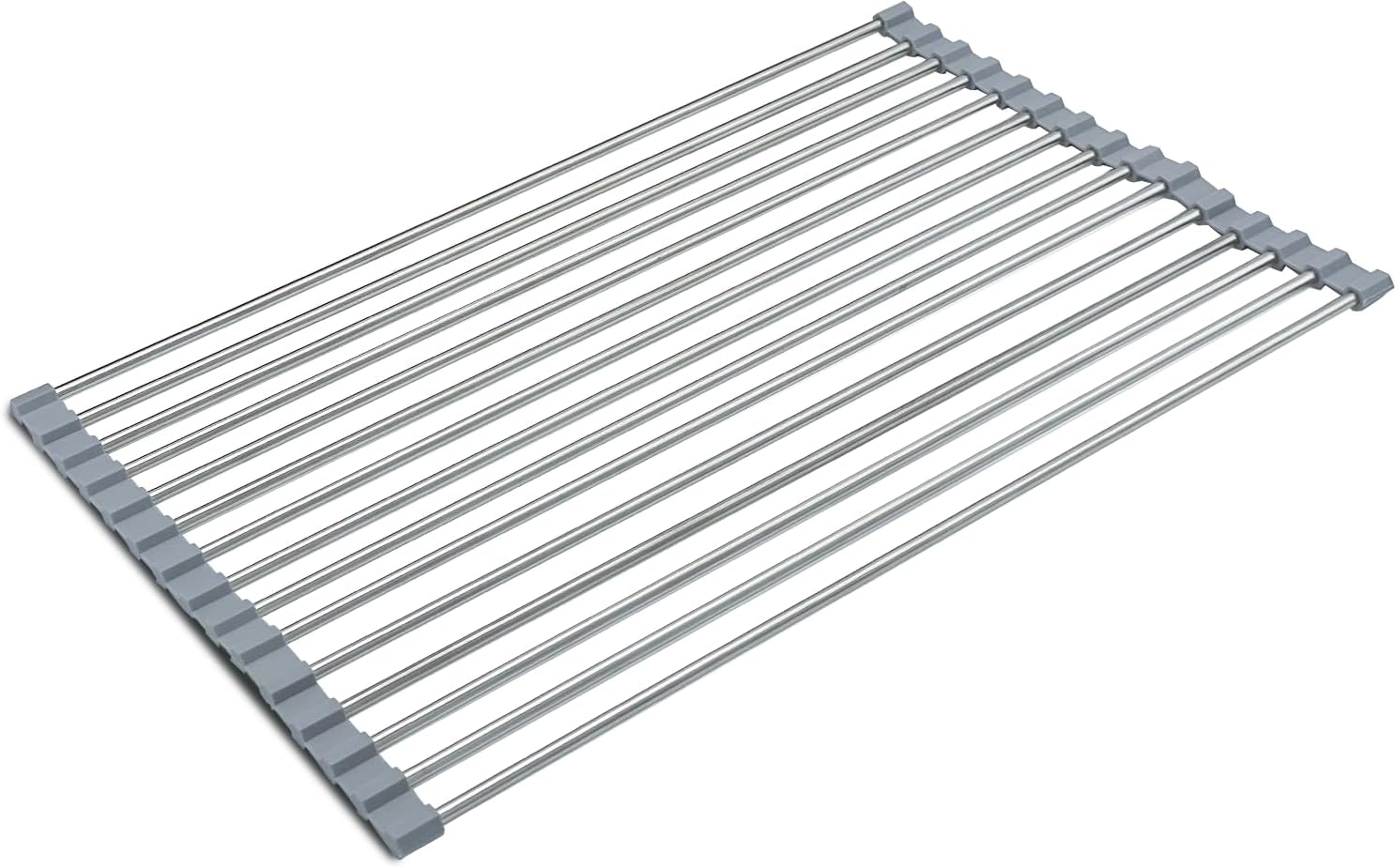 Roll Up Dish Drying Rack, Stainless Kitchen Accessories, Foldable Dish Rack, Anti-Slip Design Sink Counter Storage, Over The Sink Dish Rack, Stainless Steel, (17.5" x 12") Gray