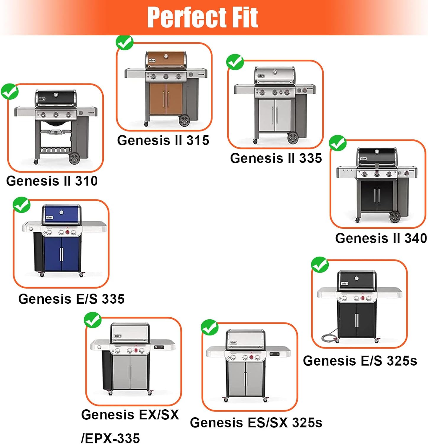 - Also Fits for Weber Genesis II LX 300 Series Grills: The genesis ii e-310 parts for Weber Genesis ii LX S-340, Weber Genesis ii LX E-340, Weber Genesis ii CSE-315, Weber Genesis ii CSS-315, Weber Genesis ii CSS-335, Weber Genesis ii CSE-335, Weber Genesis ii LX CSS-340, Weber Genesis ii LX CSE-340(2017 and newer). Replace for Weber grill accessories GS4 Parts 66805, 84136 7599