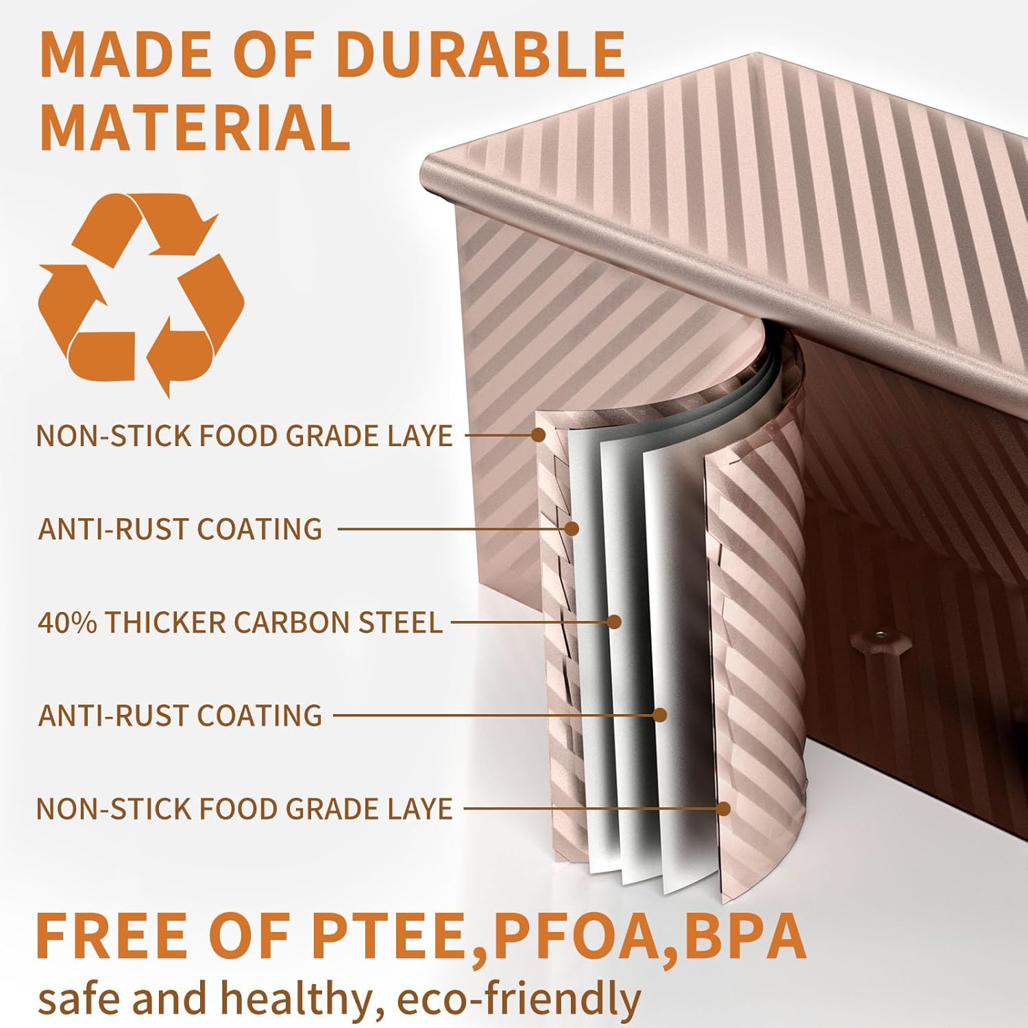- SAFE MATERIAL - The baking pan made of carbon steel is sturdy and durable, heating evenly (capable of withstanding temperatures up to 428°F). It has excellent wear resistance, is non-stick, and easy to clean. The carbon steel material ensures that the toast is crispy on the outside and tender on the inside, while also ensuring healthier and safer food preparation
