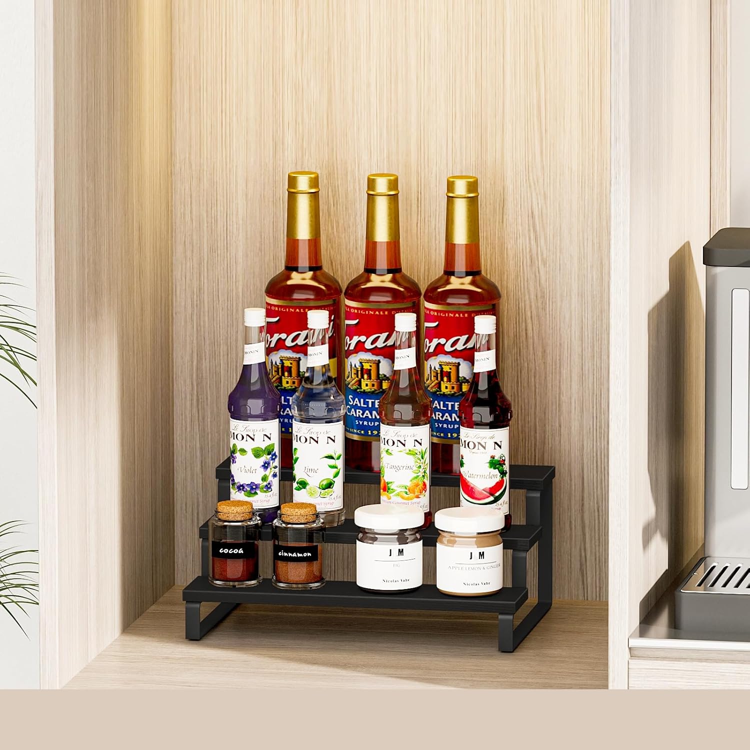 - Easy Access and Visibility: The tiered spice rack design allows for easy access and clear visibility of all your spices, so you can quickly find what you need while cooking. Say goodbye to rummaging through drawers and cupboards.