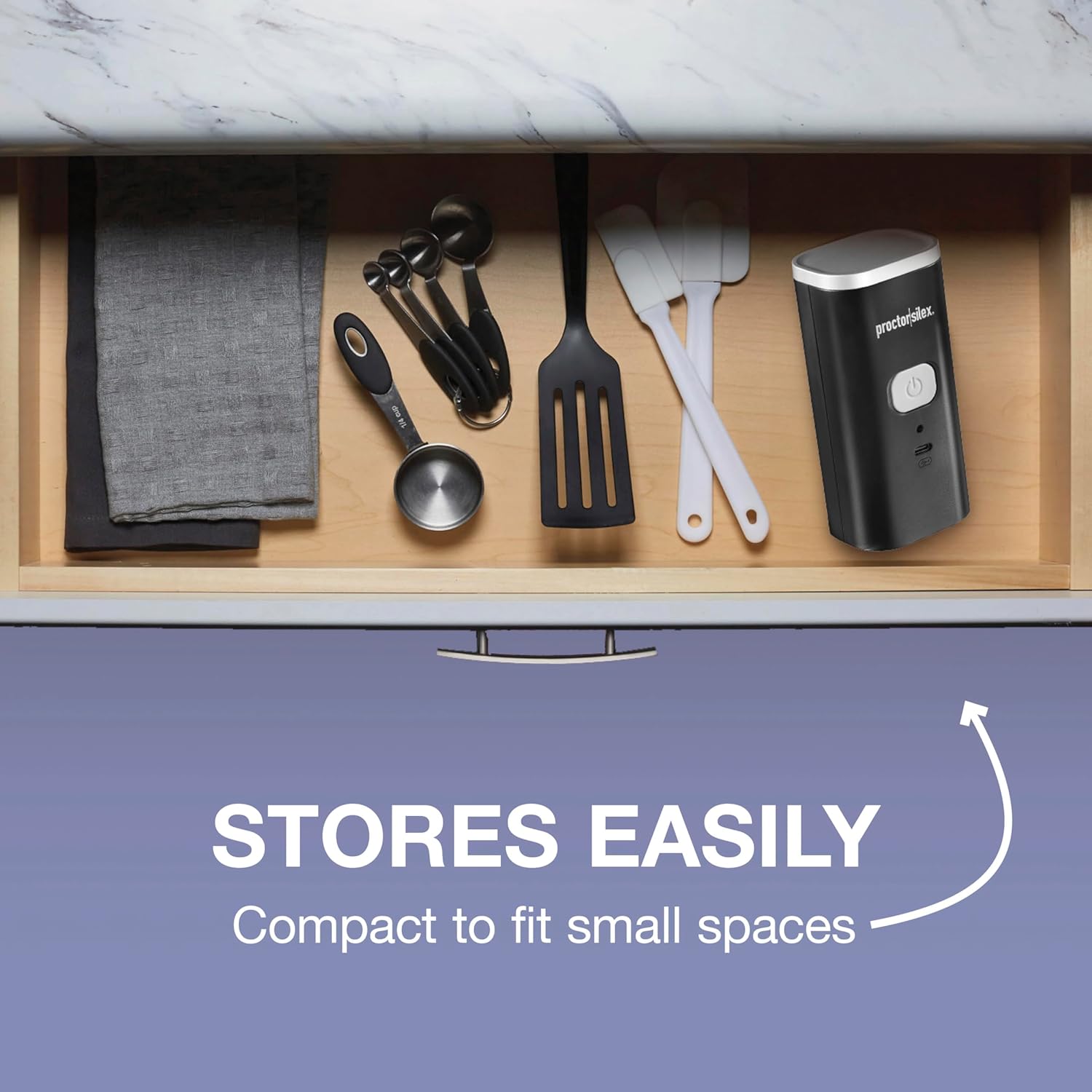 Proctor Silex Automatic Electric Can Opener, Hands Free Cordless Operation & USB Rechargeable, Self-Aligning, Cut Smooth Touch Lid Edges, Compact and Easy to Store, Black
