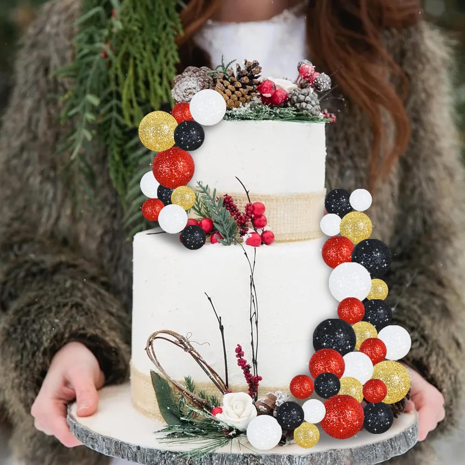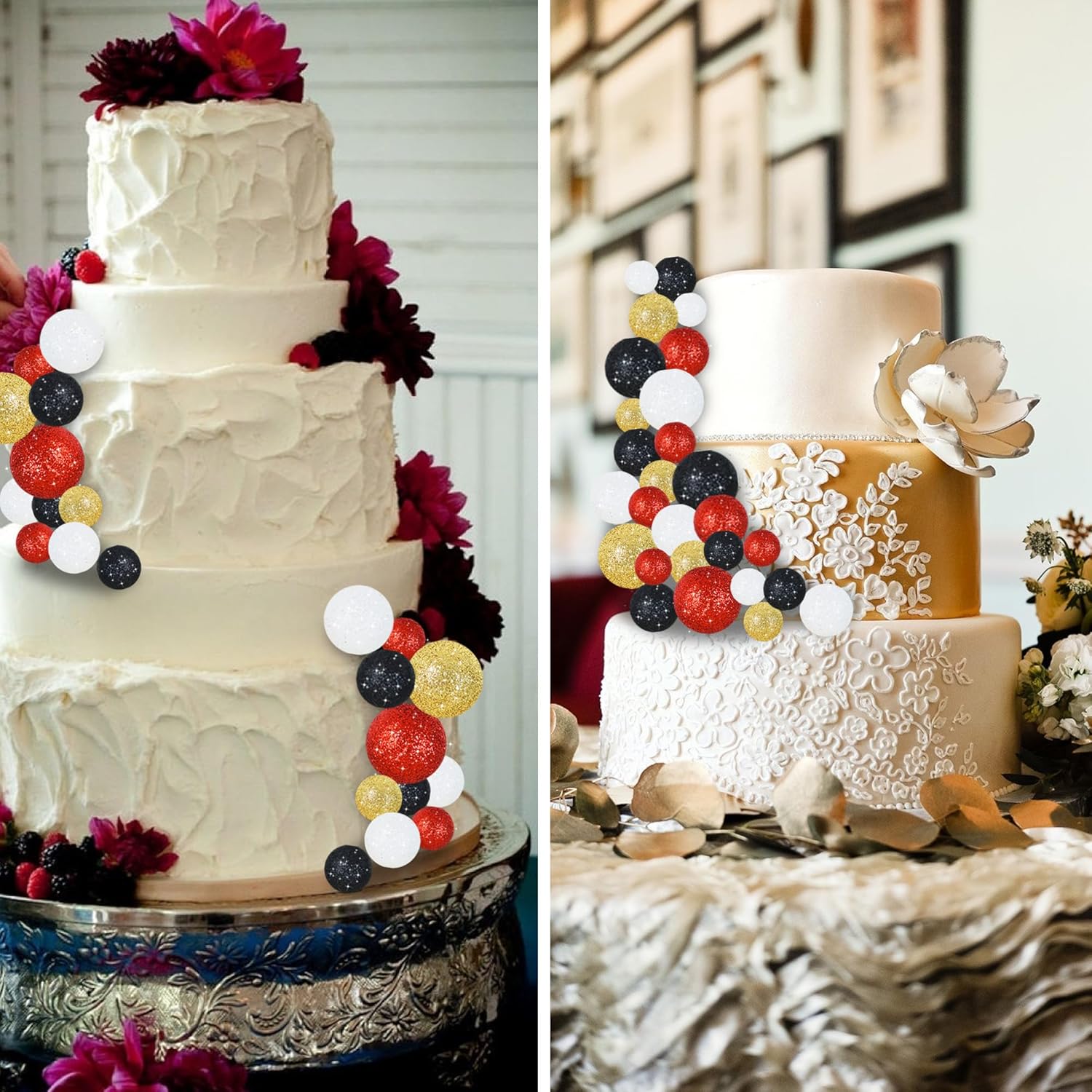 - Package Included:40 pieces plastic foam balls cake toppers in 4 colors:white,red,black,gold.Size:including 0.79 inch, 0.98 inch, 1.18 inch and 1.57 inch