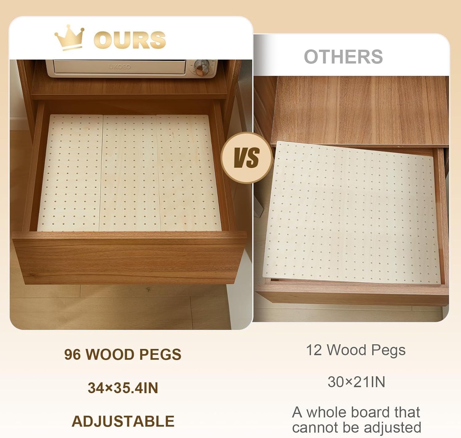 - Quality Material: the peg board drawer organizer is made from reliable wood, which is sturdy, and not prone to breakage and deformation; The product presents no unpleasant smell or burrs, ensuring your kitchen accessories are safe and reliable; It's advisable to keep the wooden peg board at a distance from water to avoid mold growth