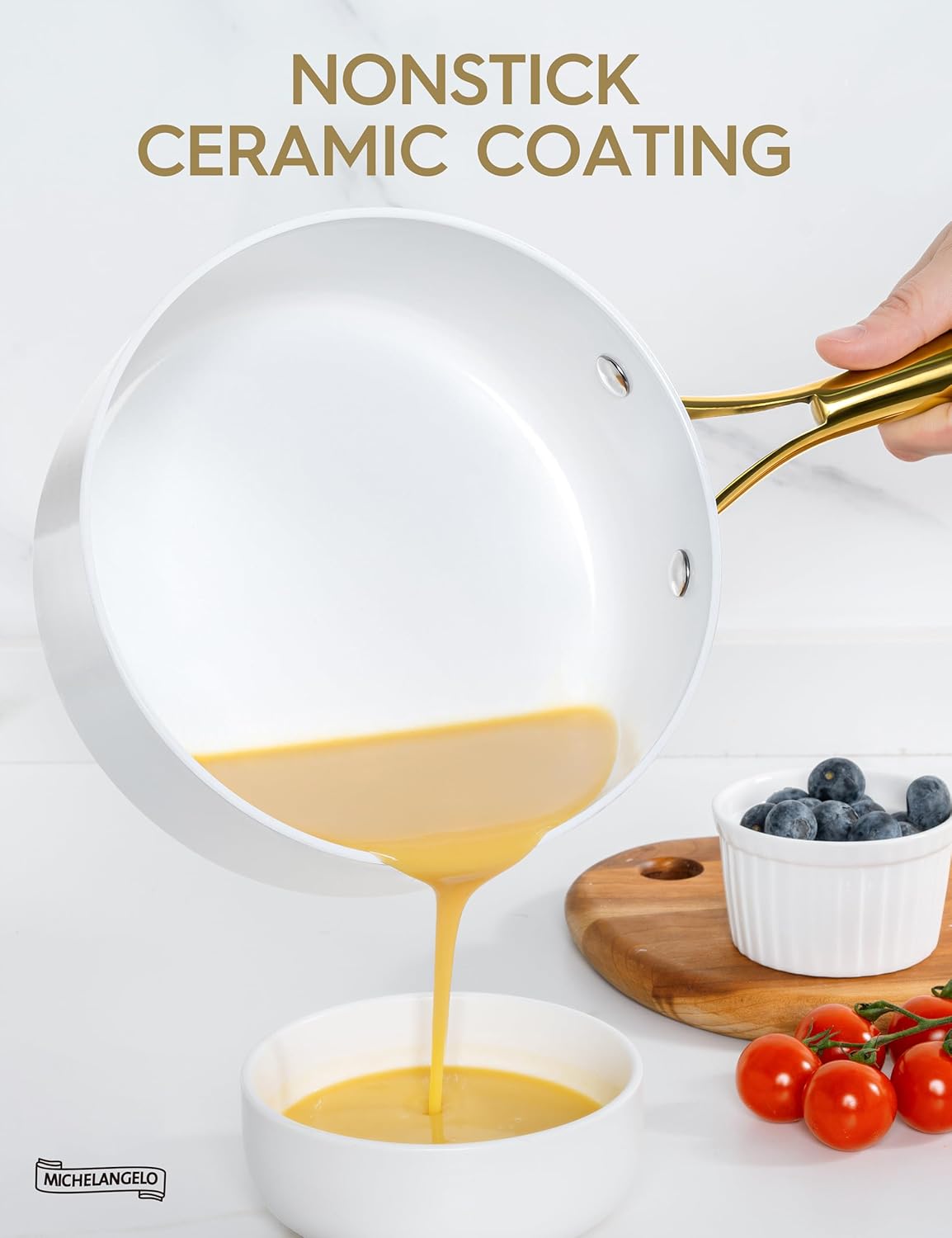 - Stunning Kitchen Artwork – Bring a touch of elegance to your kitchen with this sleek ceramic saucepan, complete with beautiful gold stainless steel handles.