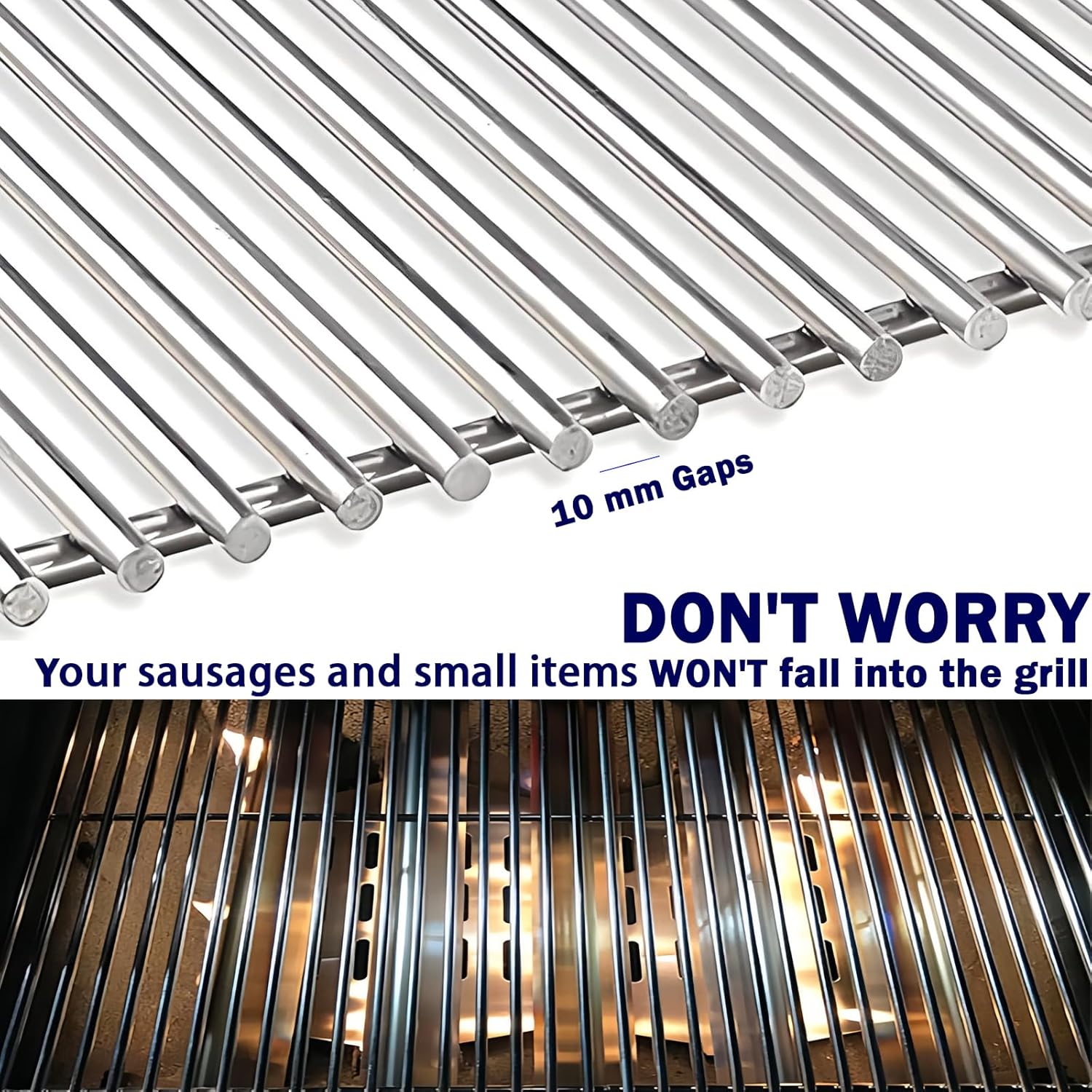- Made of heavy-duty and long-lasting SUS food-grade stainless steel, Non-magnetic, corrosion resistant, and heat resistant. Thickness is 7MM, more thicker than other 5MM Grates; Weighs 13.7 pounds, heavier than the original Weber which weighs only 10.26 pounds.