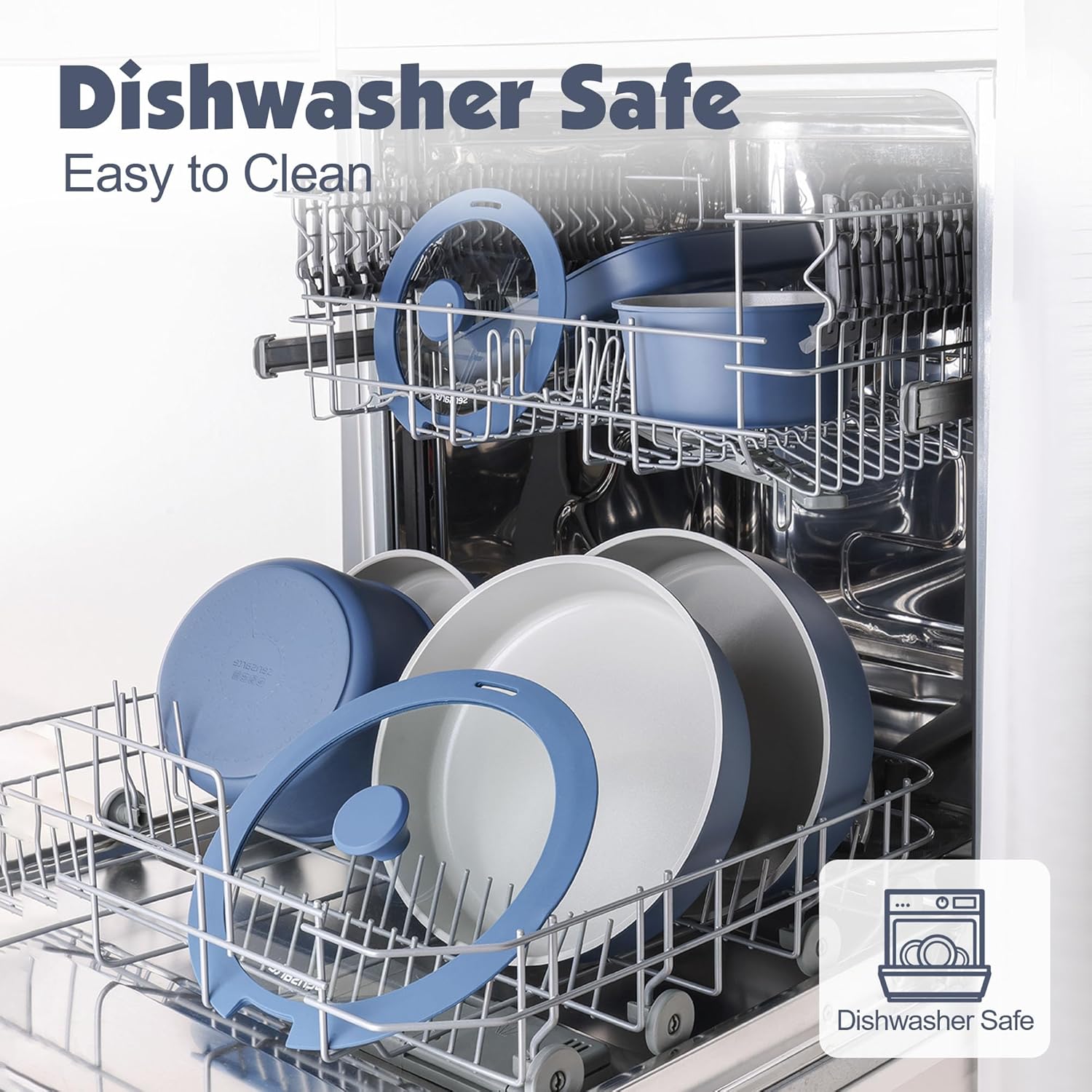 - Dishwasher Safe - Cleaning is a breeze. Professional wear-resistant design for the bottom of the pan set that prevents black residue even when used in the dishwasher.