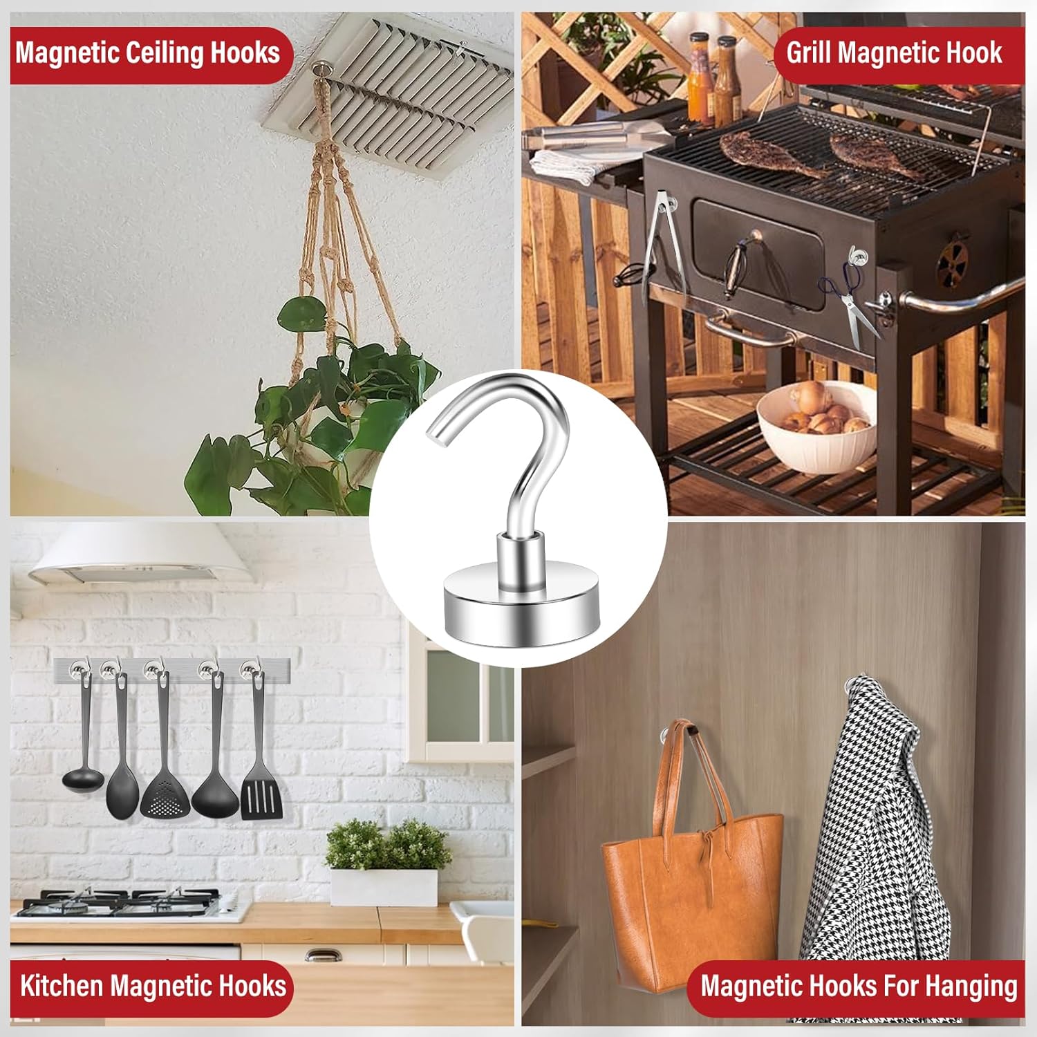 - 【WIDE APPLICATION】The strong magnetic hooks is compact and convenient,and can be magnetically attached to metal surfaces.Magnetic hooks can be attached for refrigerators, whiteboards,barbecue racks,etc.Magnet hooks are suitable for use in classrooms,homes,offices,tool rooms,and outdoors.
