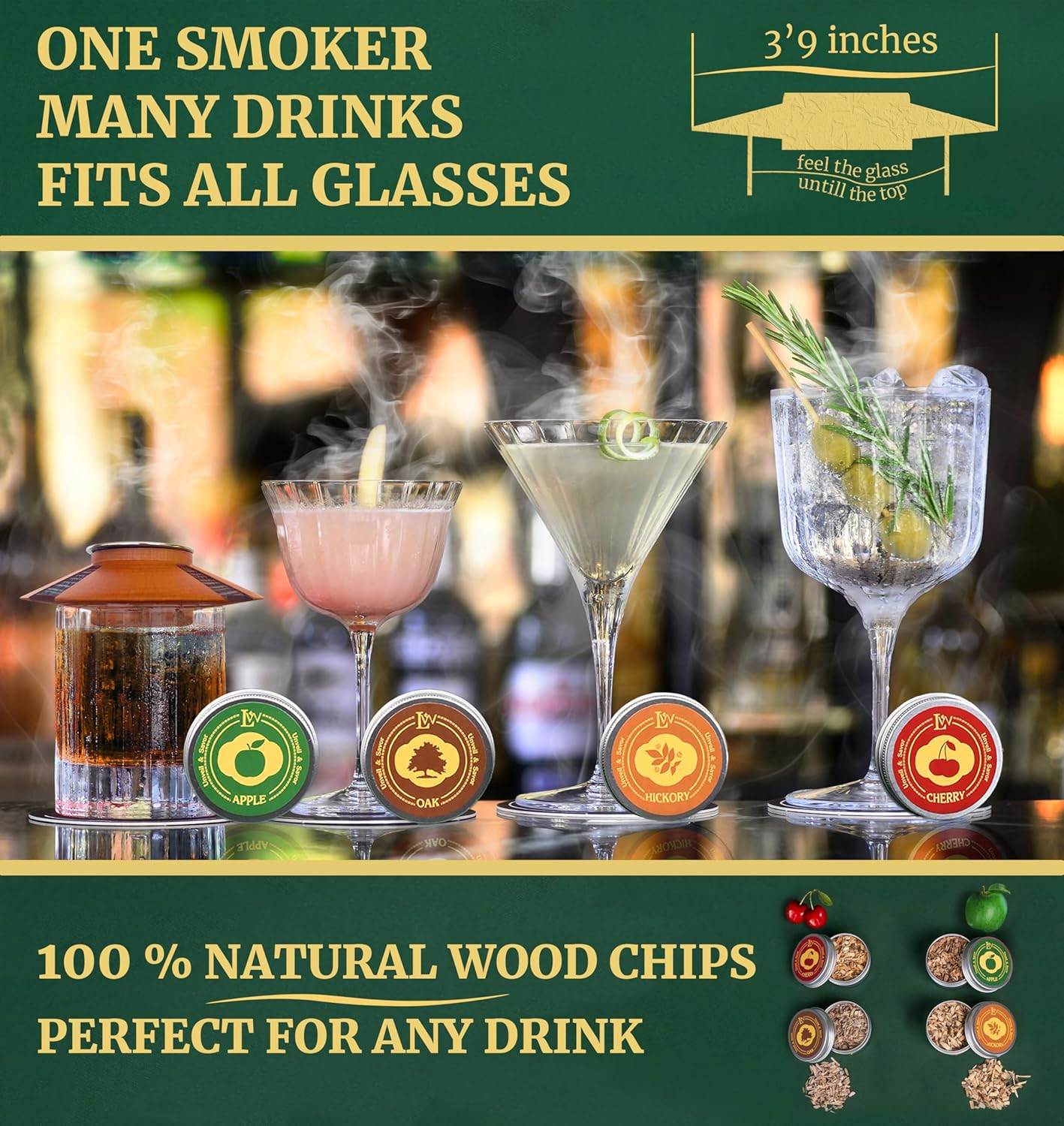 - 🥃【Versatile and Multi-Use】Ideal for cocktails, bourbon, whiskey, and food items like meats and cheese. Suitable for home kitchens, bars, picnics, and camping. Torch also perfect for searing food and toasting marshmallows.