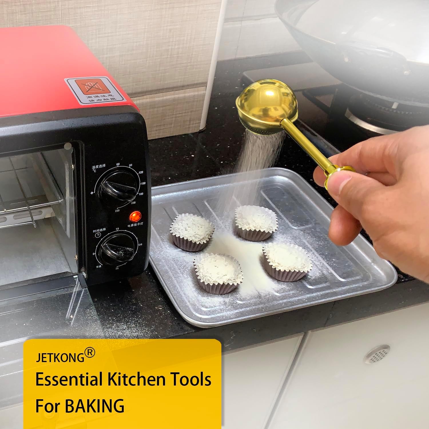 - STURDY AND WELL MADE - JETKONG sugar shaker duster is made of stiff food grade 304 stainless steel, the spring-operated handle and the round sifters welded together and rust-proof.