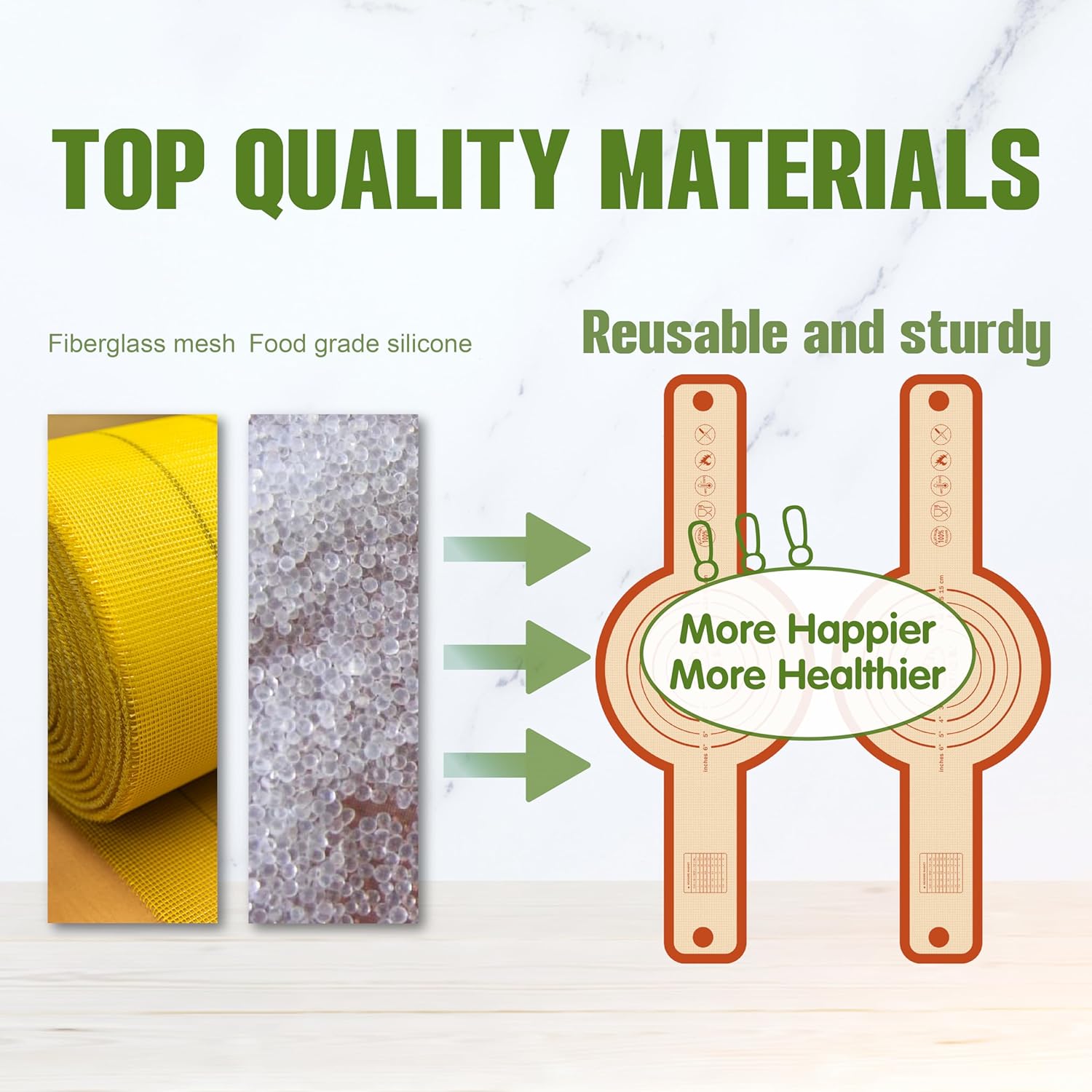 - ✅【Non-Stick and Anti-Slip】 The surface of the bread matt for sourdough has undergone special treatment, which not only provides excellent non-slip performance but also achieves physical anti-stick properties. During the baking process, the silicone baking mat can be securely fixed on the workbench, effectively preventing dough or baked goods from sliding or shifting, ensuring the precision of baking and the aesthetics of the finished product.