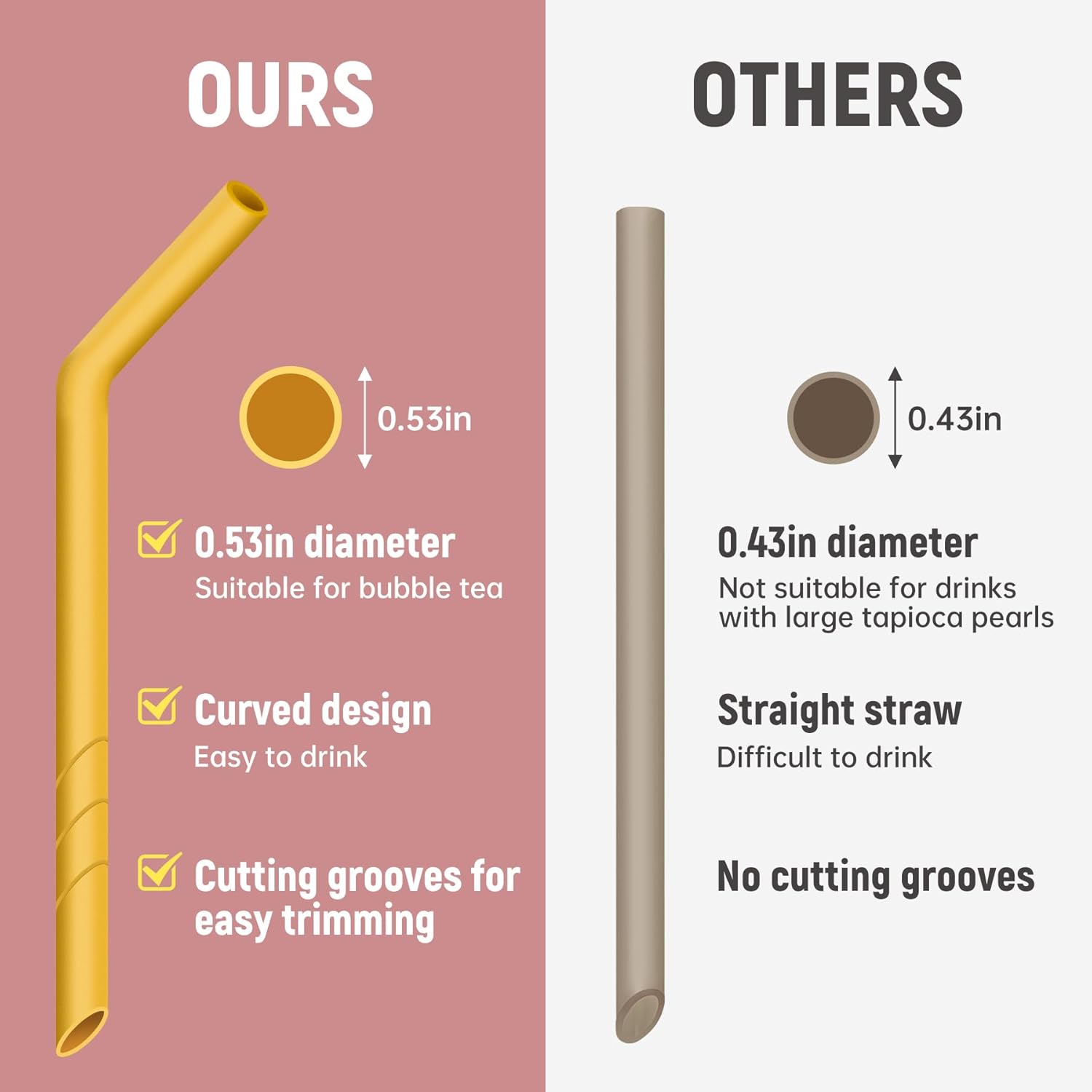 - Note: The external diameter of the straw is 0.53 inches with a widened design, suitable for drinks like smoothies and milkshakes, but larger than regular straws. Please check the size information before purchasing. Thank you.