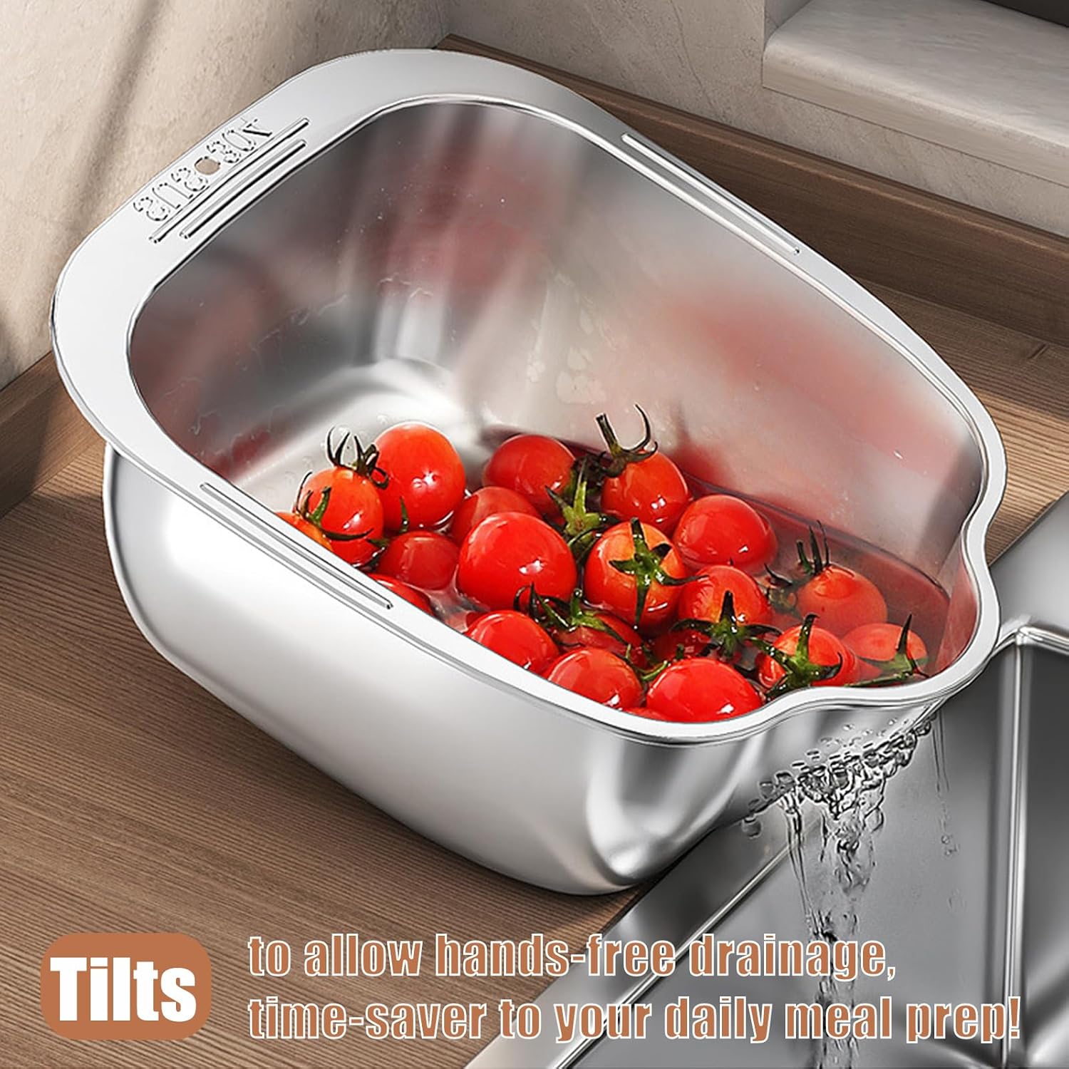 Rice Washer Strainer Bowl, Stainless Steel Washing Bowl whit Side Drainers, Versatile Square Quinoa Colander for Cleaning Rinsing Fruits, Vegetables, and Beans - Multifunctional Drain Basket