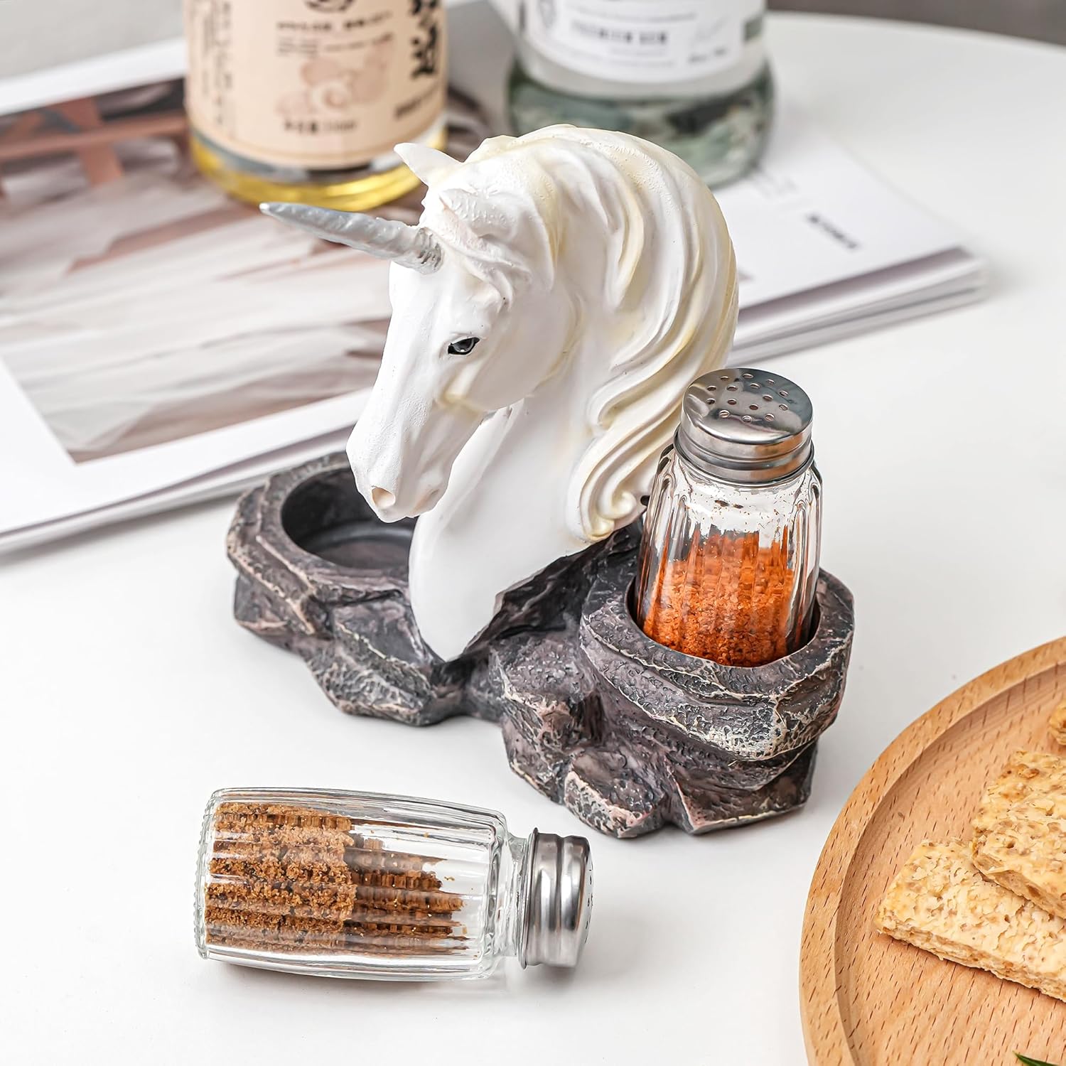 - Handcrafted Design: Each unicorn salt and pepper shaker is meticulously crafted from high-quality resin, ensuring durability and a unique look
