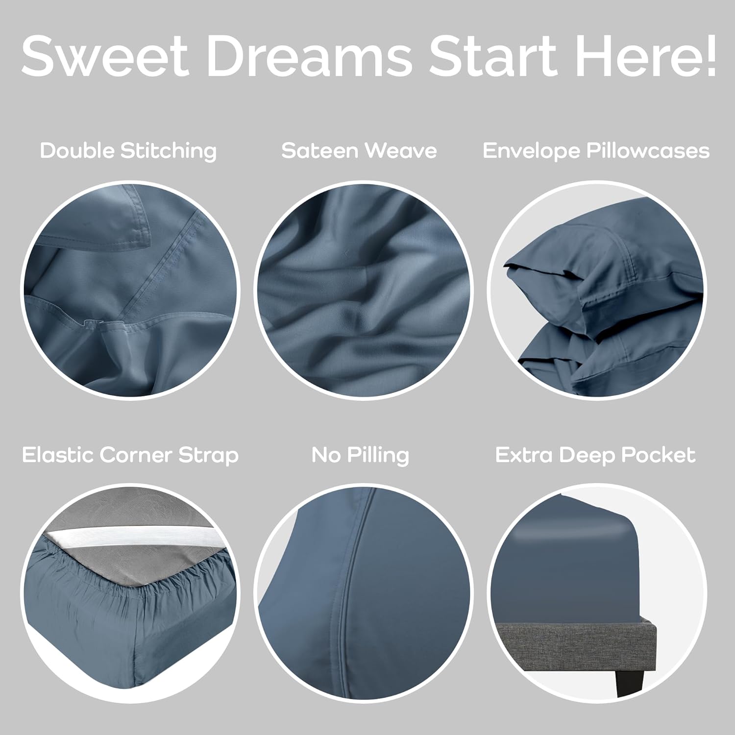 - Tired of Waking Up to Messy Bed Sheets? Our cal king fitted sheet with corner straps features an 18" deep pocket california king sheet set design, perfect for your king mattress, while our envelope closure pillowcases keep pillows securely in place.