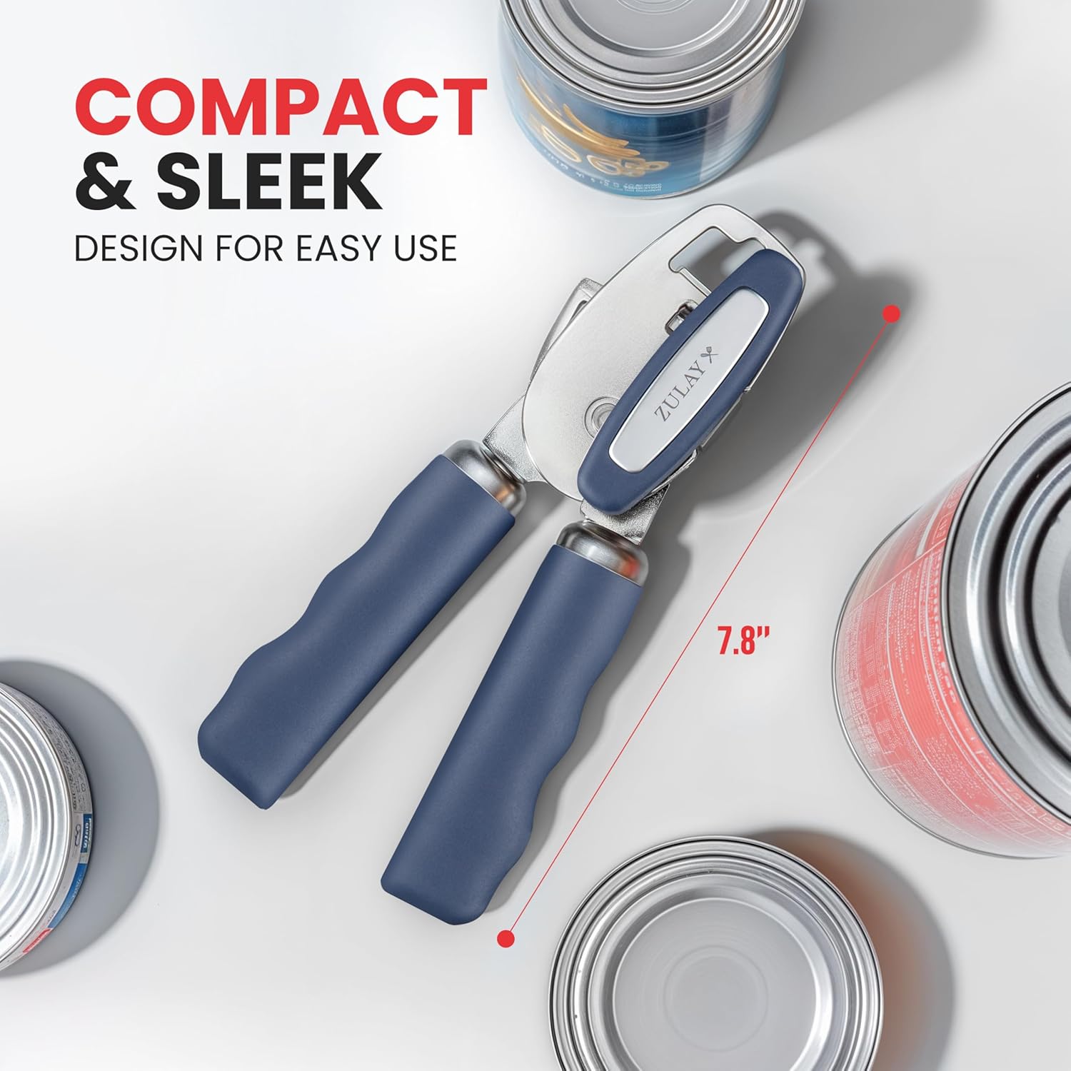 Zulay Kitchen Heavy Duty Stainless Steel Can Opener Manual with Bottle Opener - Rust Proof Manual Can Opener With Turn Knob & Comfy Soft Grip Handles - Blue