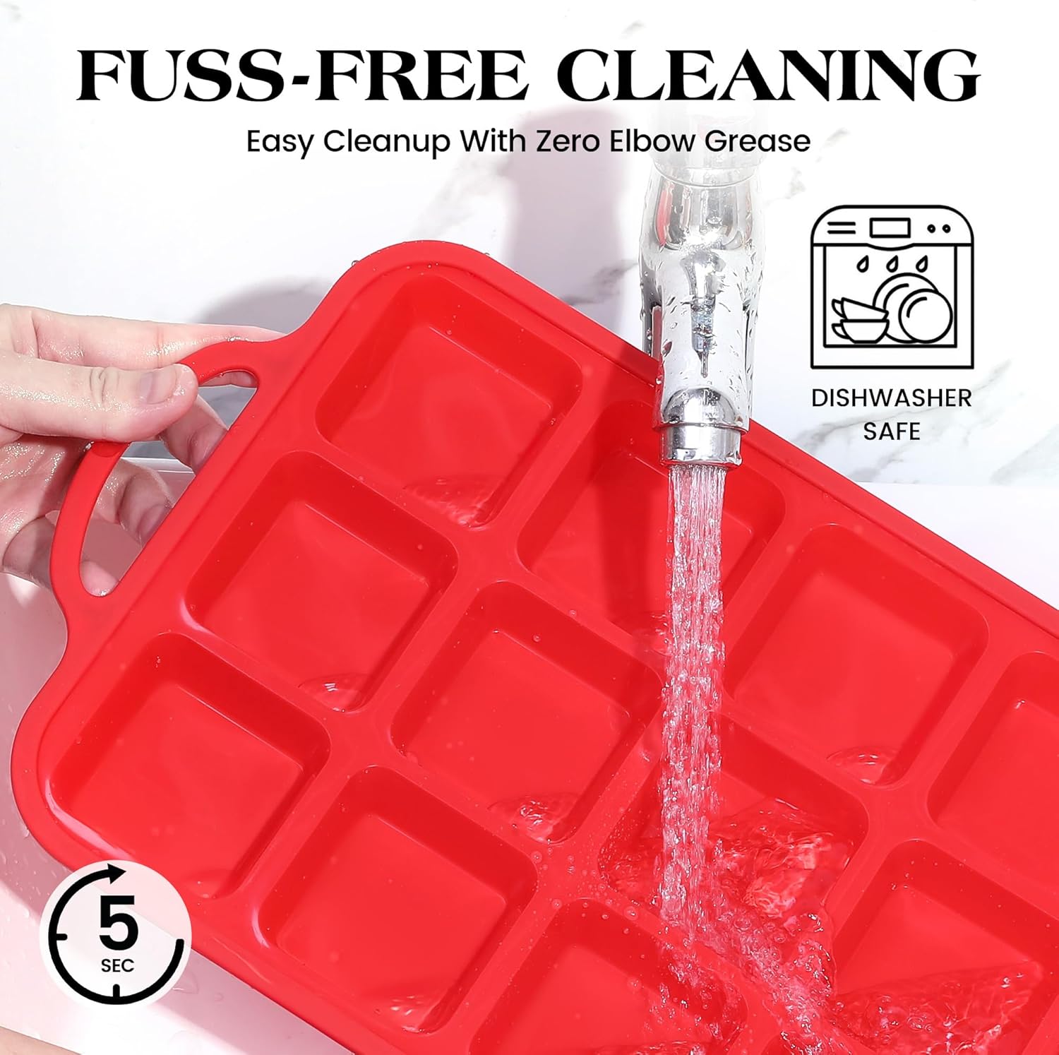 1 Pc Square Brownie Pan With Dividers Mini Silicone Brownie Pan for Baking Individual Nonstick 12 Cups Square Muffin Cupcake Pans with Metal Reinforced Frame (Red)