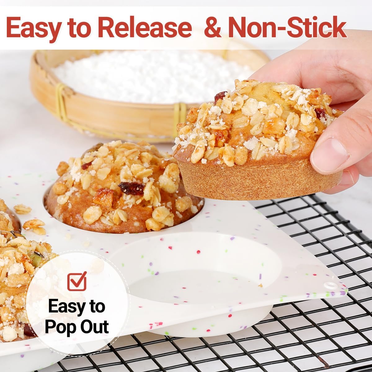 - Safet and Healthy: Safe for oven, microwave, dishwasher, fridge, freezer. Wide heat resistant range: -104 ℉ to 446 ℉(-40 ℃ to 230 ℃), these large muffin top pans are impermeable, practicality and durability
