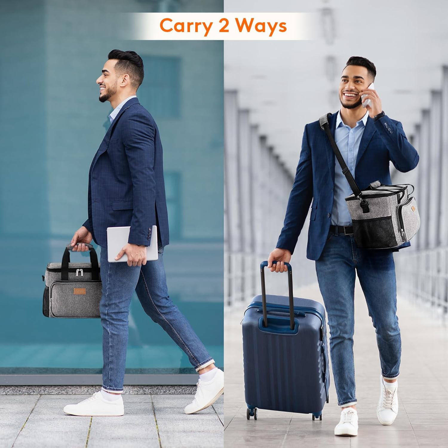 - Convenient & Portable: The lid of this cooler lunch bag can be opened up widely with strong two-way zippers, which means you can put your lunch container into the bag and take out of the bag vertically. Prevent liquids from leaking out of the container and soiling inside the bag. Tough handles and shoulder girdle allows you to carry it easily. Moreover, the front and side extra pocket can hold small items like keys and earbuds.