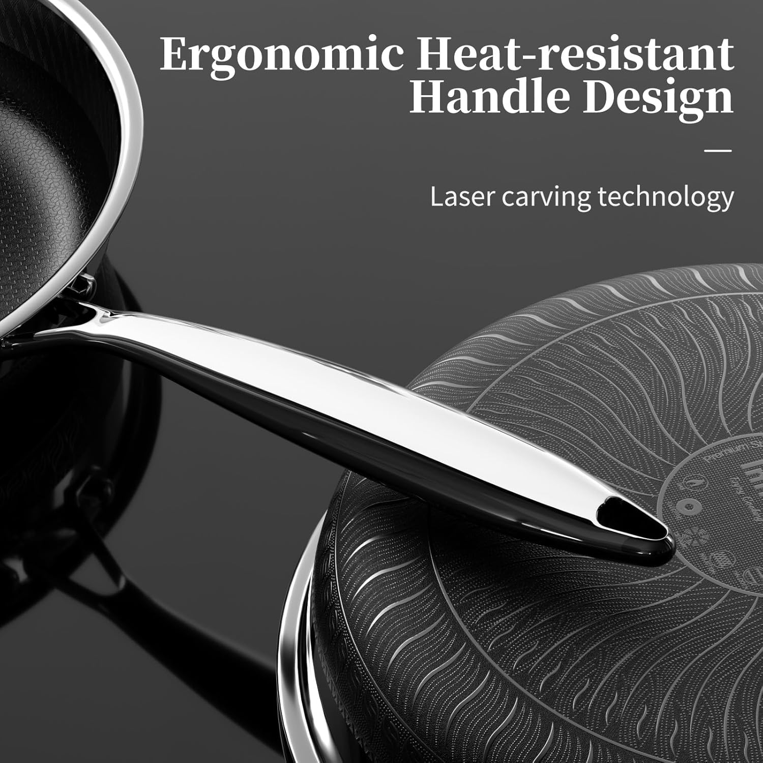 - 【Super Nonstick Dual Honeycomb Texture Design】The titanium ceramics stainless steel frying pan set adopts a dual honeycomb laser-etched process, makes the entire bottom and side walls of stainless steel frying pan are covered with micro-convex grain, reducing the contact area between food and the bottom of the nonstick frying pan, allowing food to suspend on the healthy nonstick coating, improving the nonstick performance of the cooking pan