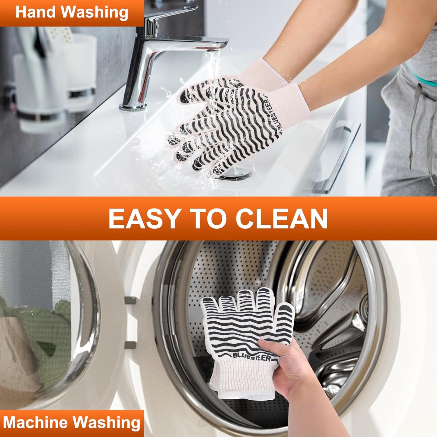 - EASY TO CLEANING AND STORAGE: The kitchen cooking gloves can be hand or machine washed. The strip design allows you to easily hang them on the hooks, which are easy to dry and help you store them. Whether you use it indoors or outdoors, it is the perfect helper to make cooking easier