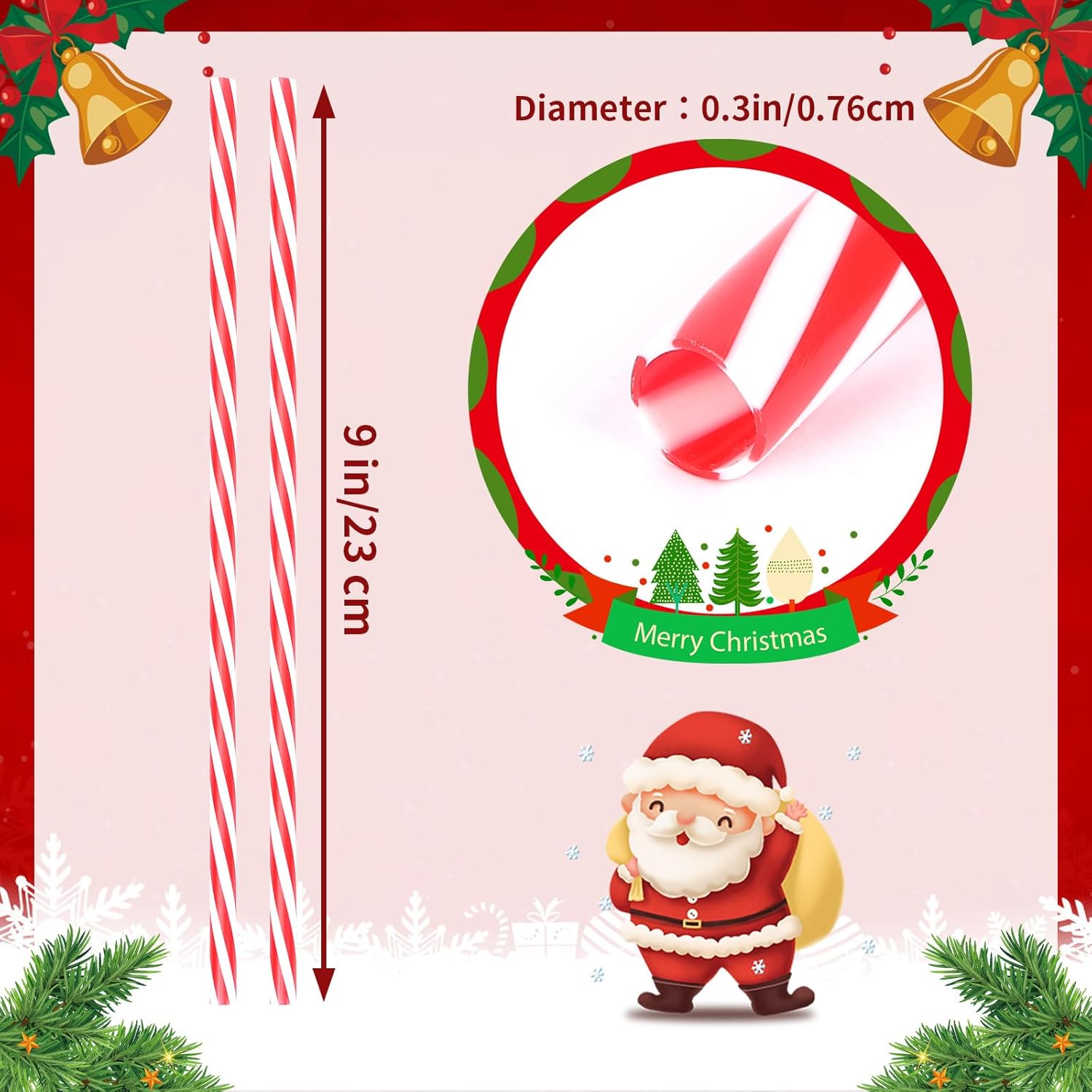 - Reusable & Suitable Size: Compared with paper straws, our hard plastic straws are made of plastic, which can be cleaned and reused many times. The length of Christmas drinking straws plastic is 23cm/9inch, which is suitable for large cups, milk bottles, glasses or old-fashioned water cups, etc. You can also cut the red and white striped straws into suitable lengths according to your needs. Please clean Christmas straws before using, and do not use plastic Christmas straws in microwave oven