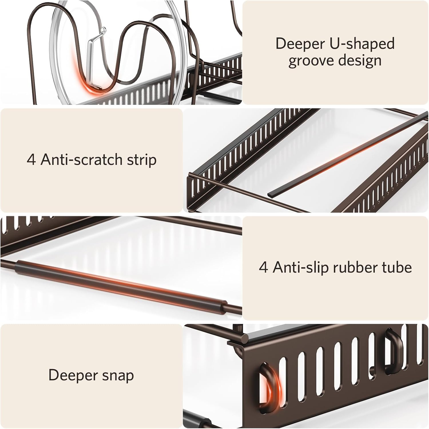 - U-Shape Cabinet Pan Storage Organizer - Specifically designed for kitchenware storage, our cabinet pot and pan organizers feature reinforced U-shaped dividers and deep grooves to stabilize cookware. This pans organizer inside cabinet securely holds items in place while doubling as a baking sheet pan organizer-a durable choice for tight kitchens