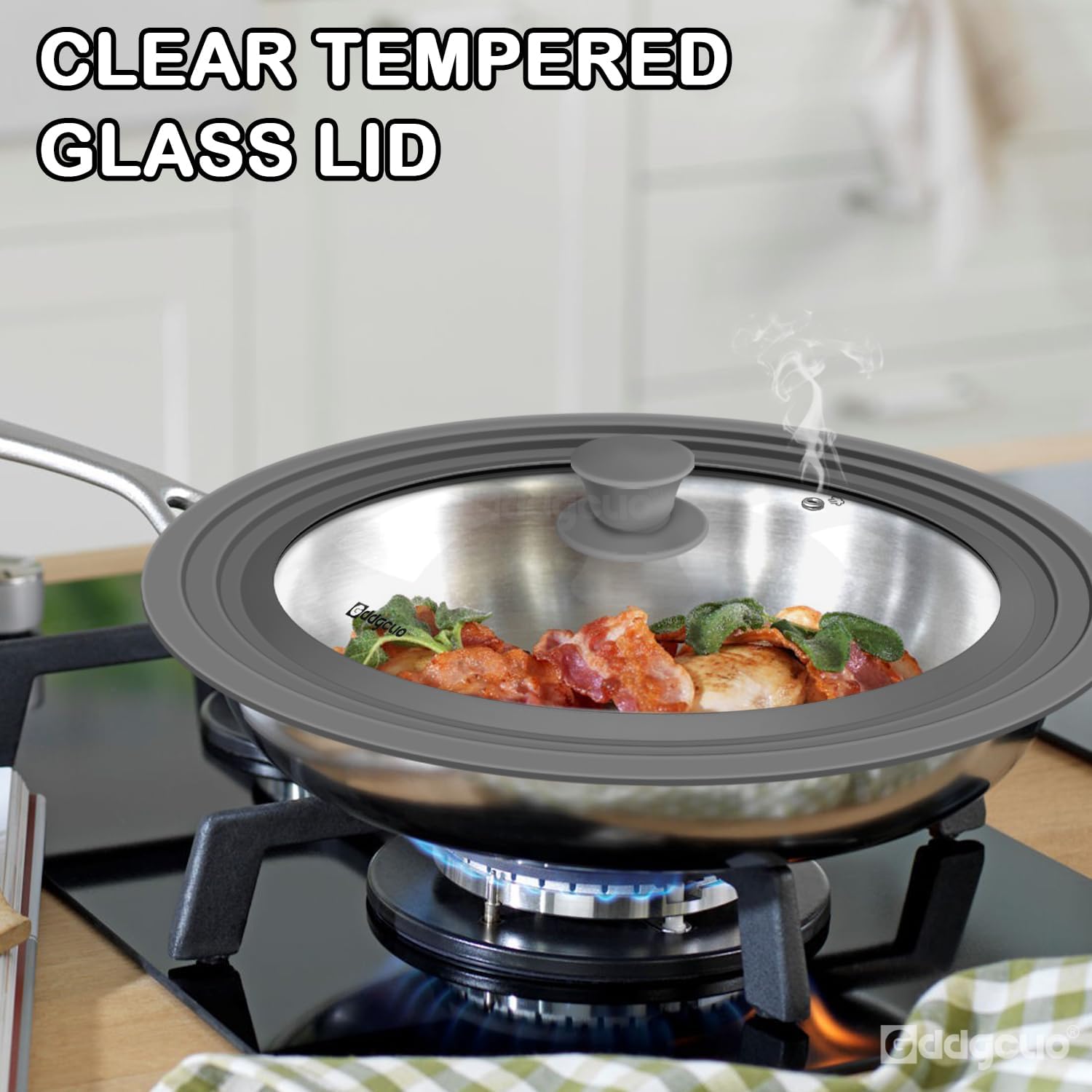 - FOOD GRADE MATERIAL: GDDGCUO 13 inch Large Universal pan lid made of Food Grade Silicone & High Temperature Tempered Glass, Heat Resistant UP to 450°F, durability