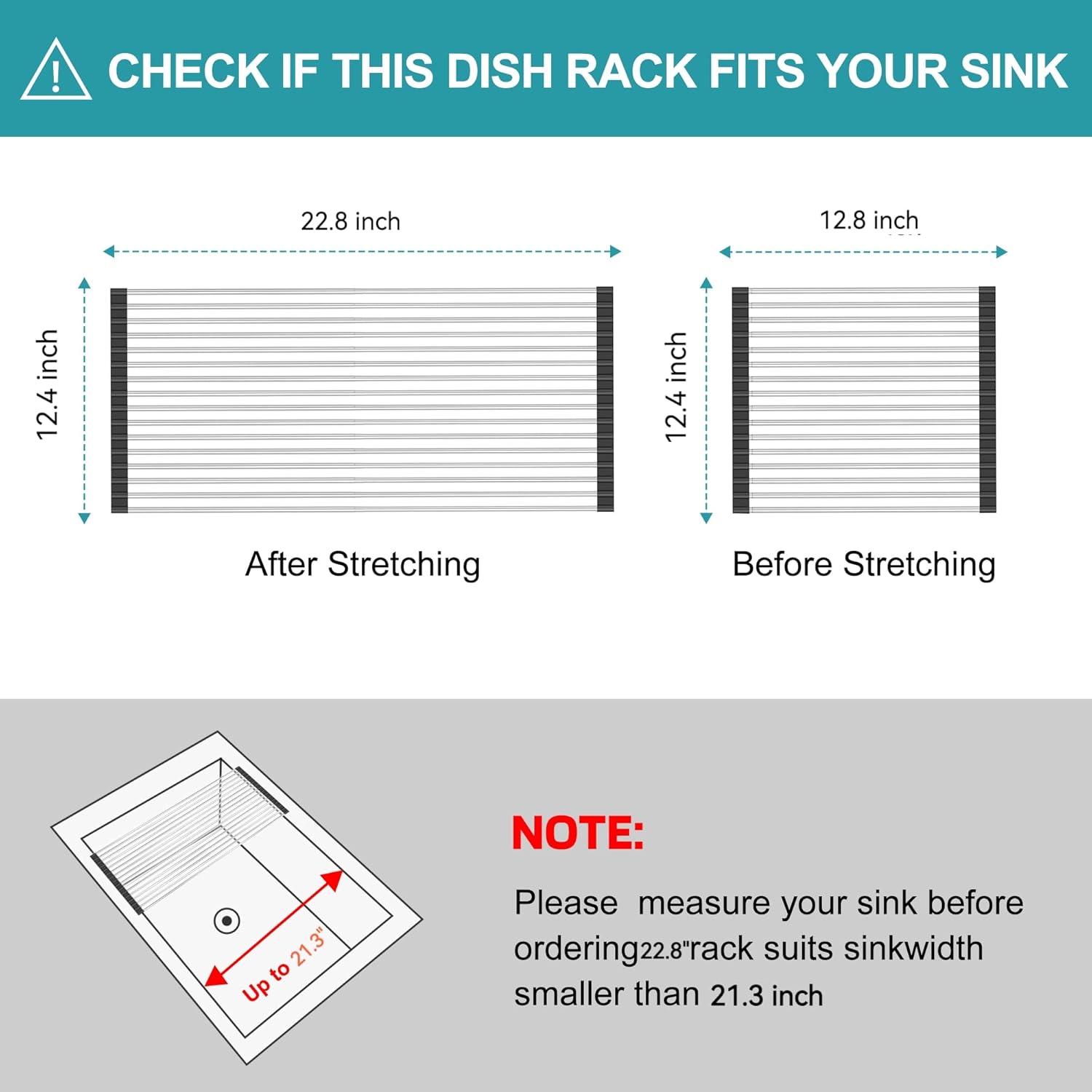 - 【PERFECT DESIGN】🎁 Giftable Package - Ready to go for gifting to your love ones 💝The length of the sink dish drying rack can be adjusted according to your needs,dish drying rack size is adjustable 12.4"(length) x12.8"(width) -12.4"(length) x22.8"(width). The sink-type dish drying rack is suitable fo most sizes of sinks,and it is better to confirm the size of the sink before purchasing. it sinks with the shorter side does NOT exceed 21.3''. [NOTE - If your sink is wider than 21.3" please order a larger model].